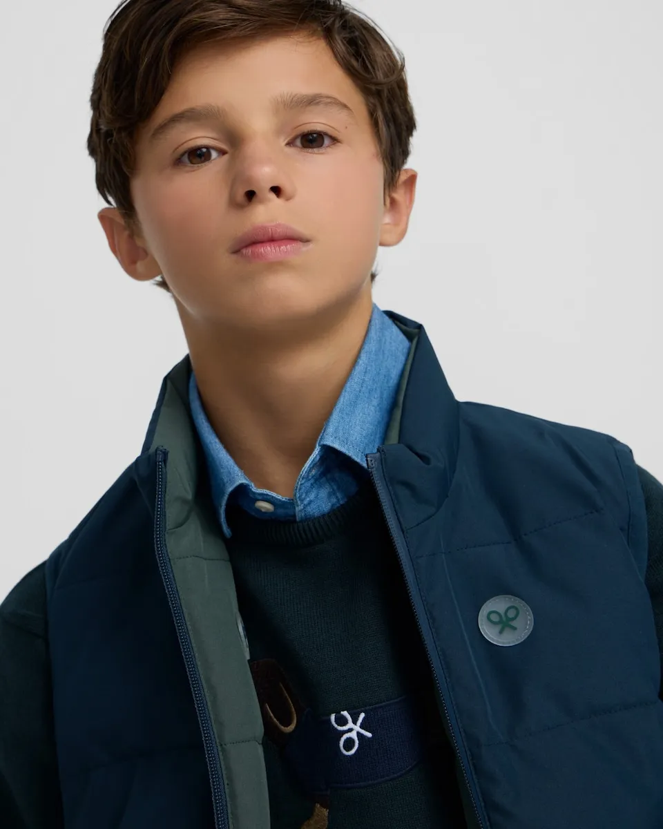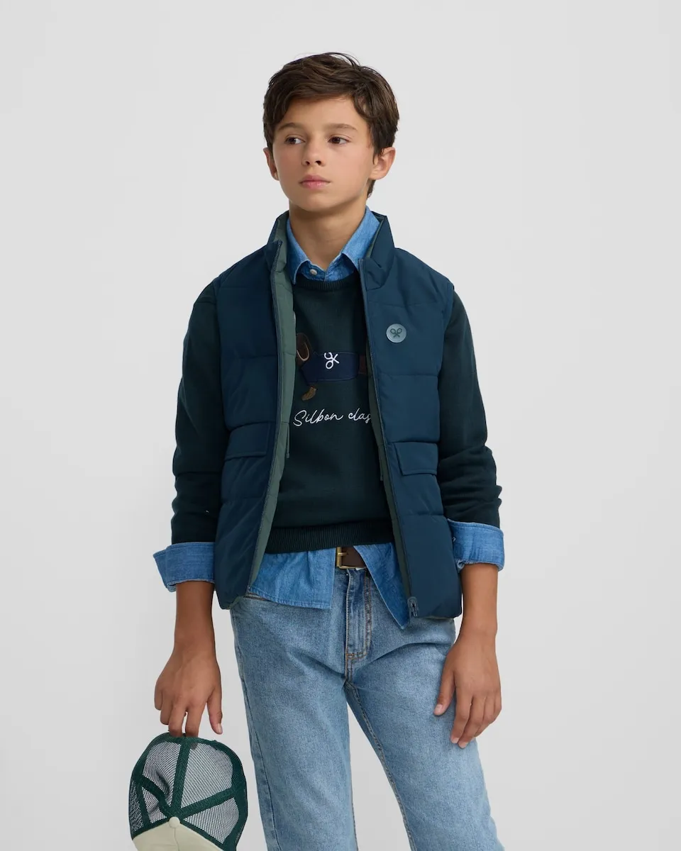 Двусторонний детский жилет темно-синего цвета Silbon