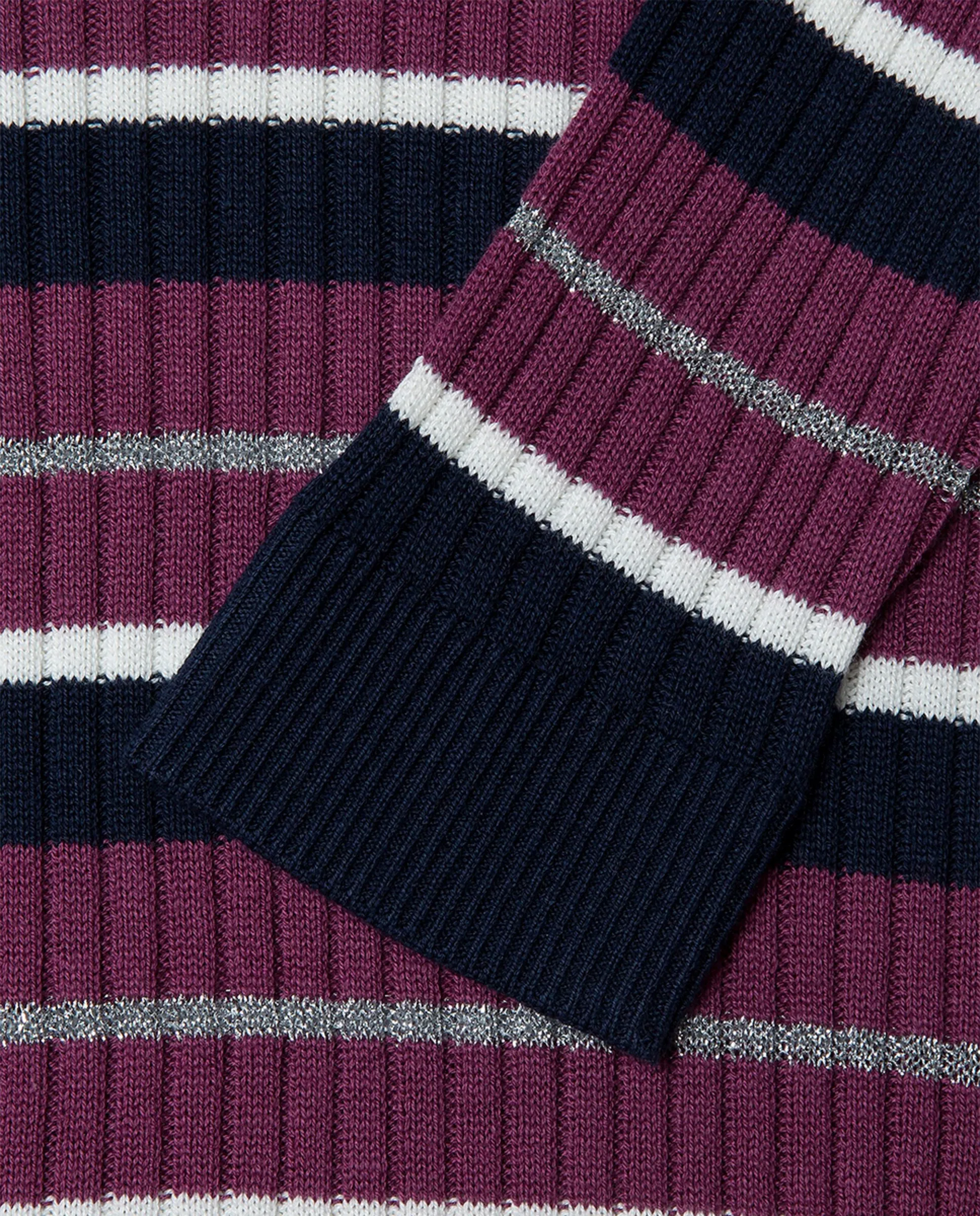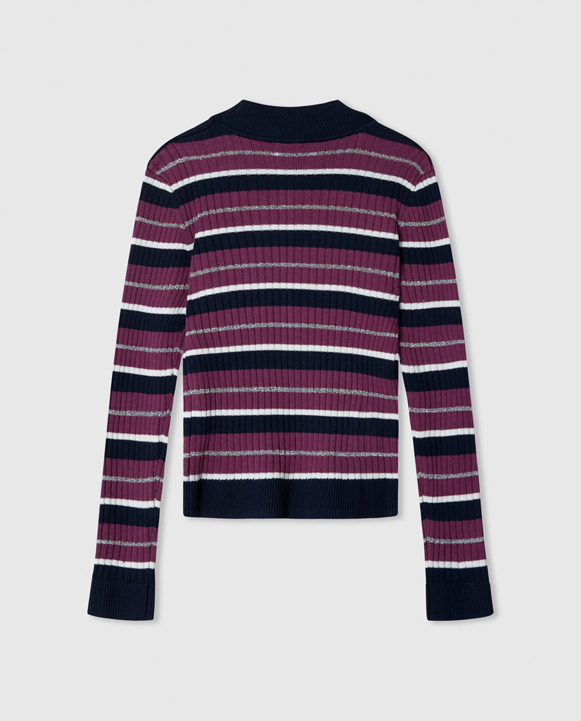 Полосатый вязаный джемпер с воротником Перкинс, с канальной вязкой, с нанесенным логотипом на подоле