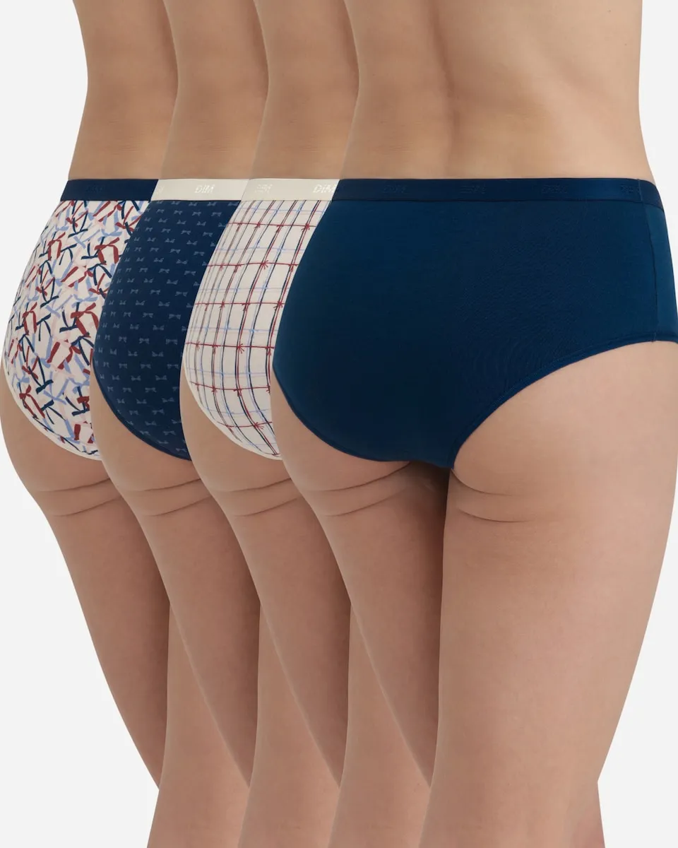 Набор из 4 эластичных хлопковых трусиков с принтом Dim, мультиколор