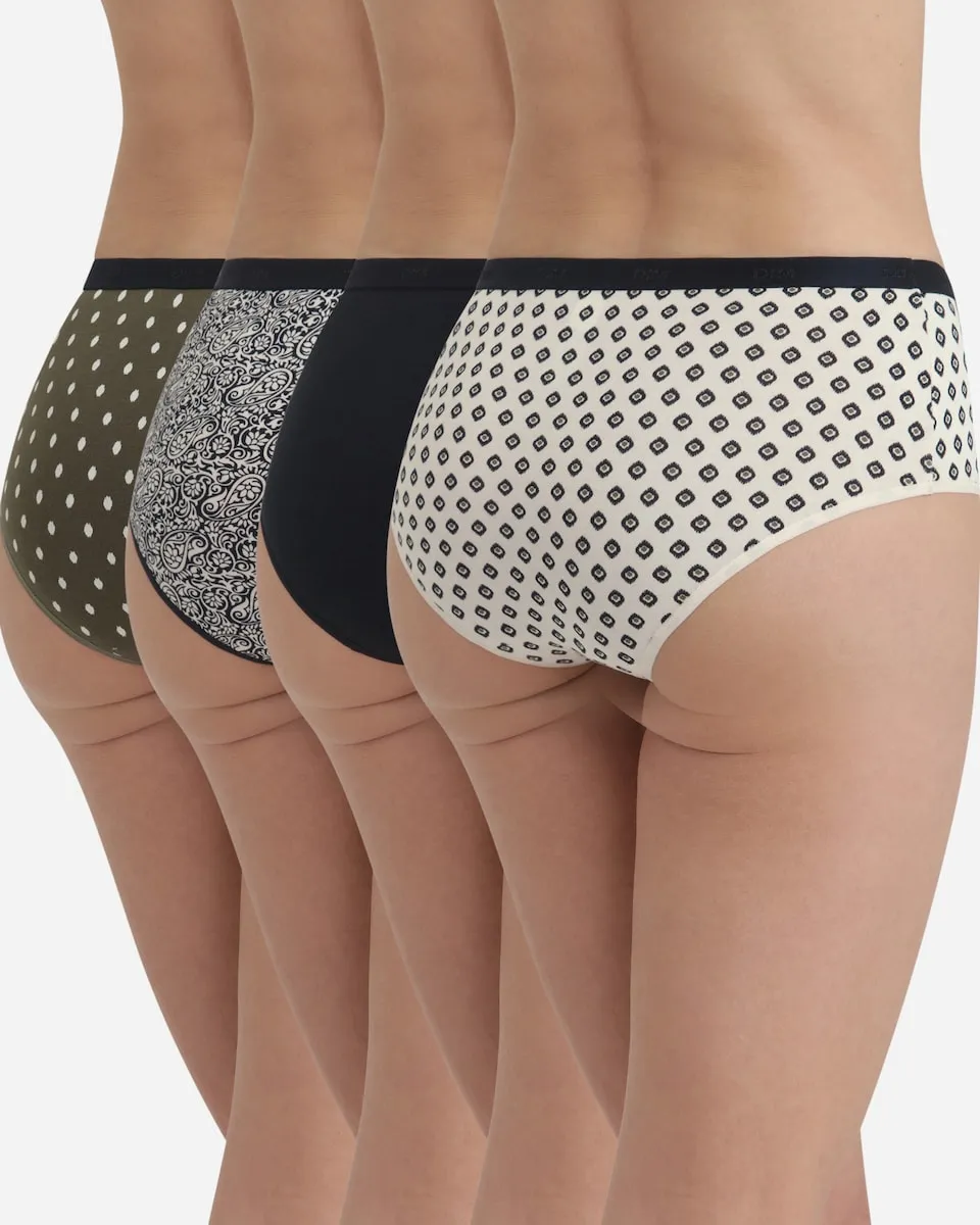 Набор из 4 эластичных хлопковых трусиков с принтом Dim, мультиколор