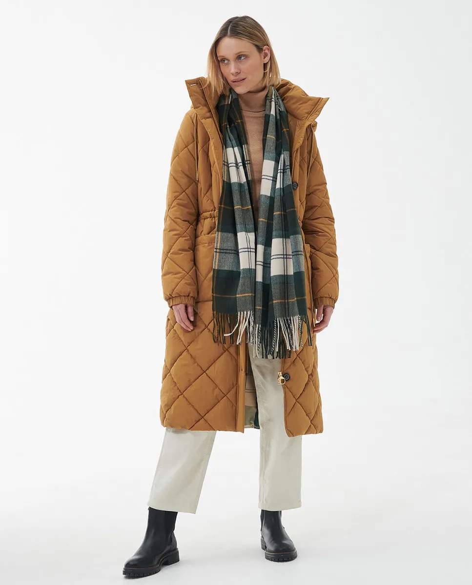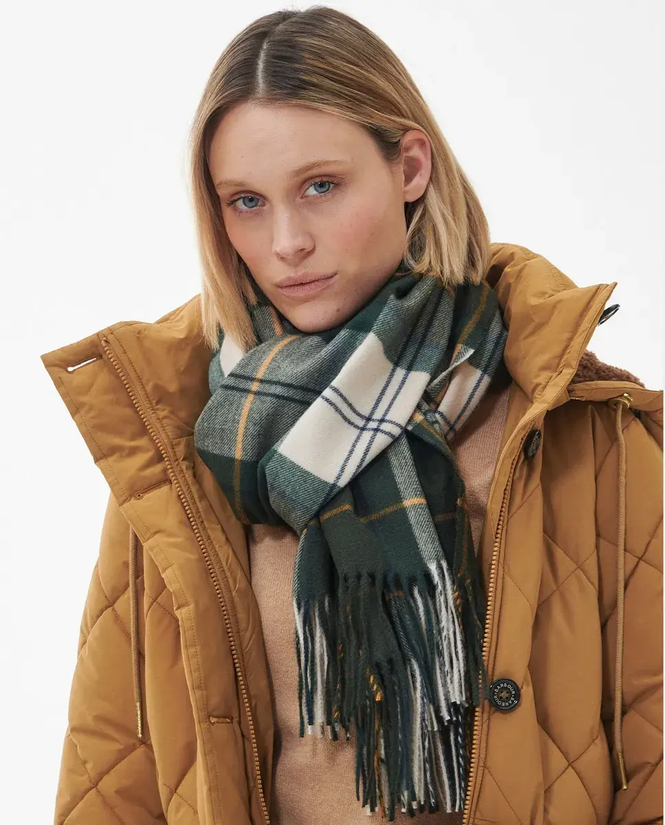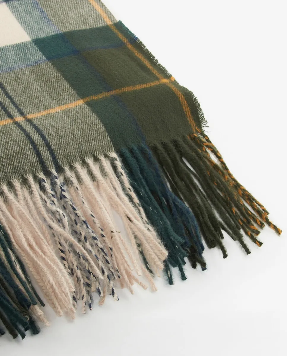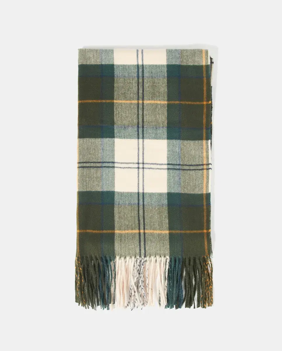 Очень большой шарф, выполненный из сверхмягкой замшевой нити с характерным шотландским узором Барбур и бахромой на подоле.