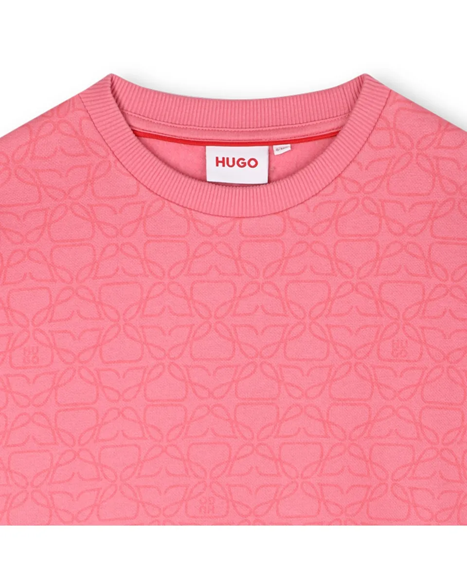 Это платье из щетинистой махровой ткани от HUGO, созданное для комфорта и элегантности, имеет полный принт, придающий ему уникальный вид. Кнопки с логотипом в нижней части платья добавляют стильную и современную отделку этой повседневной вещи.