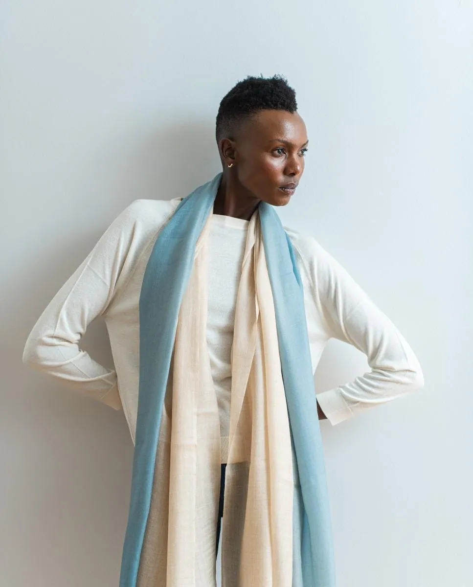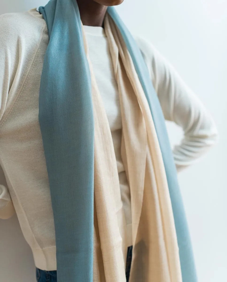 Шарф 100% кашемир градиент в оттенках синего и кремового