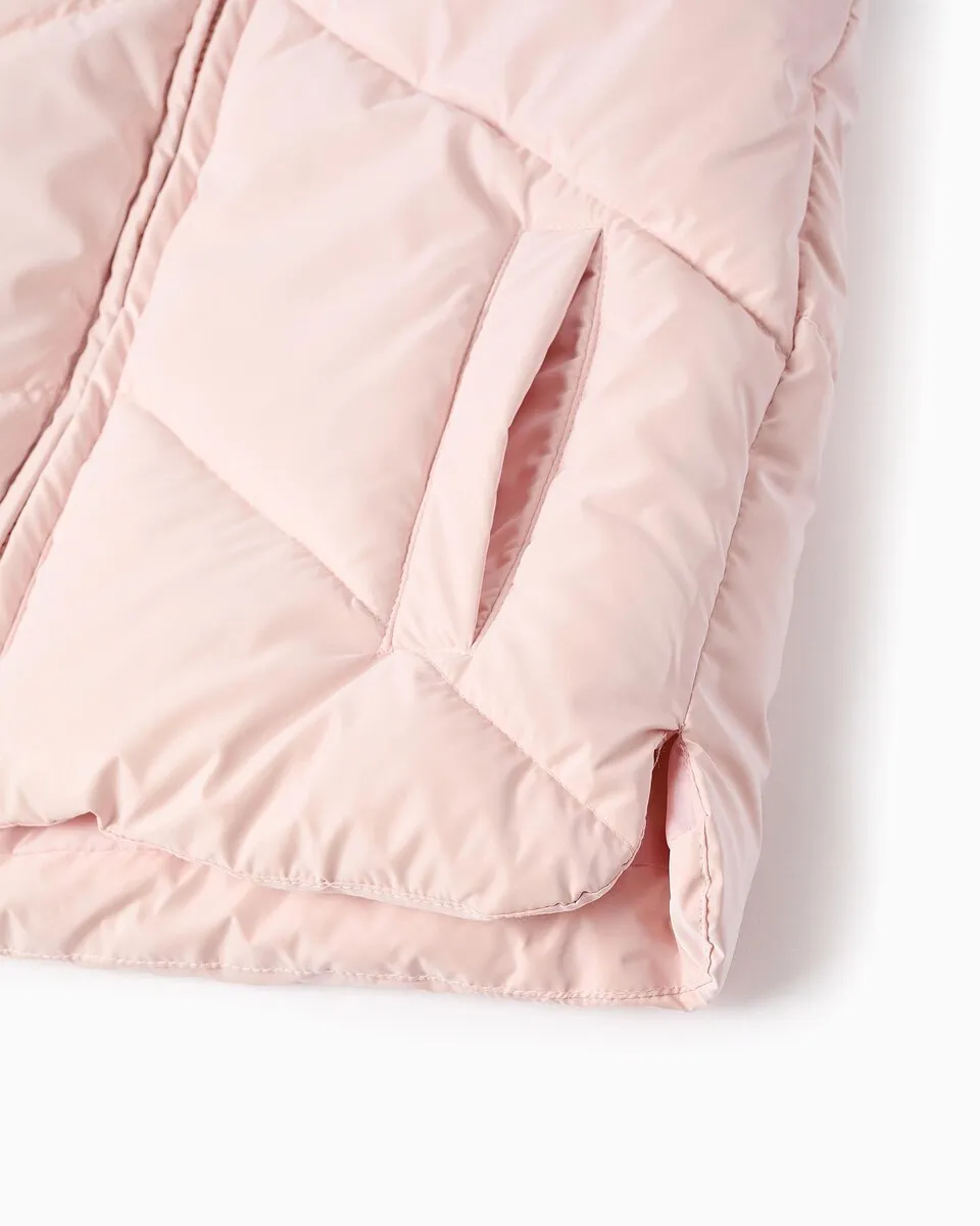 Стеганый жилет для девочки с капюшоном Zippy, светло-розовый