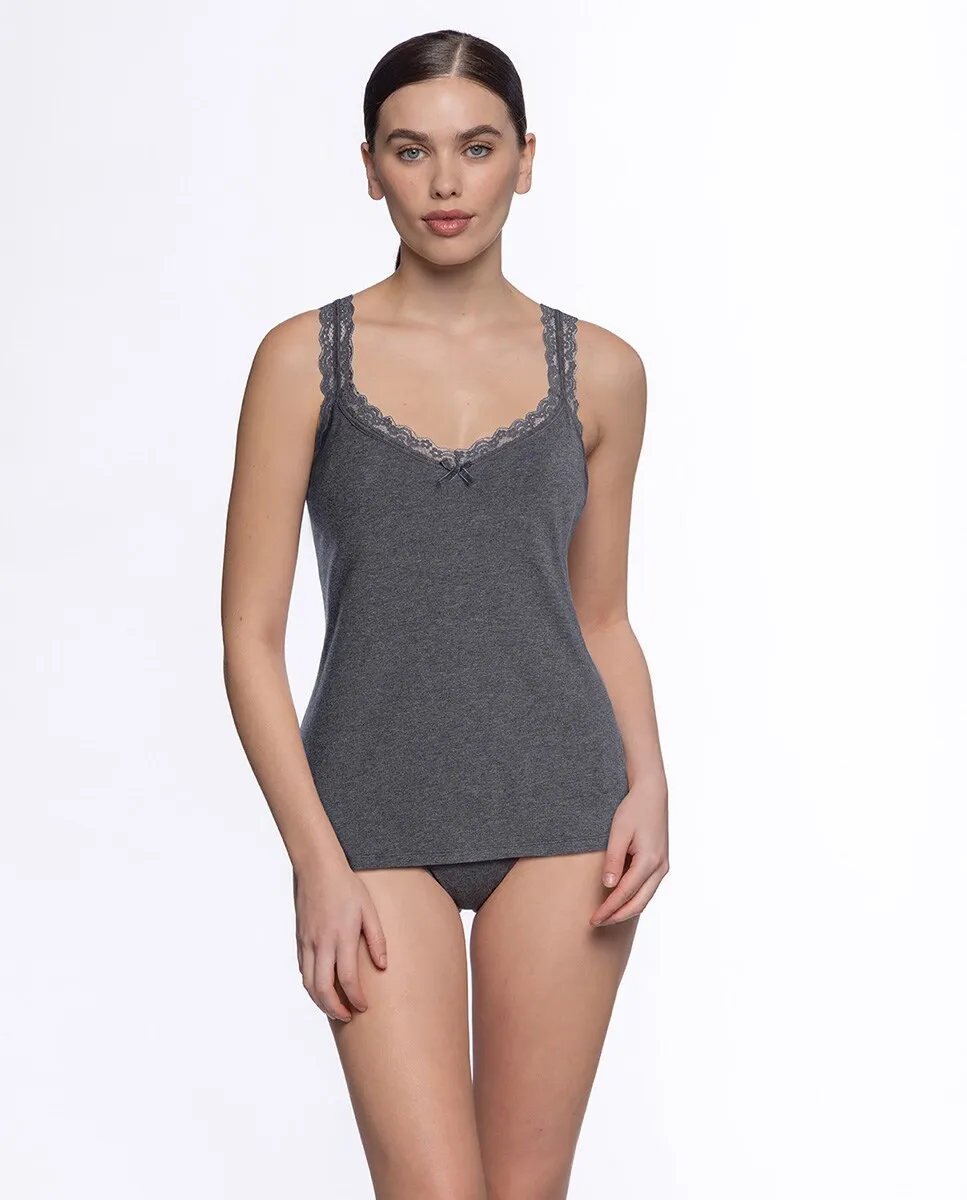 Майка на бретелях с кружевом Punto Blanco, серый 4 902₽