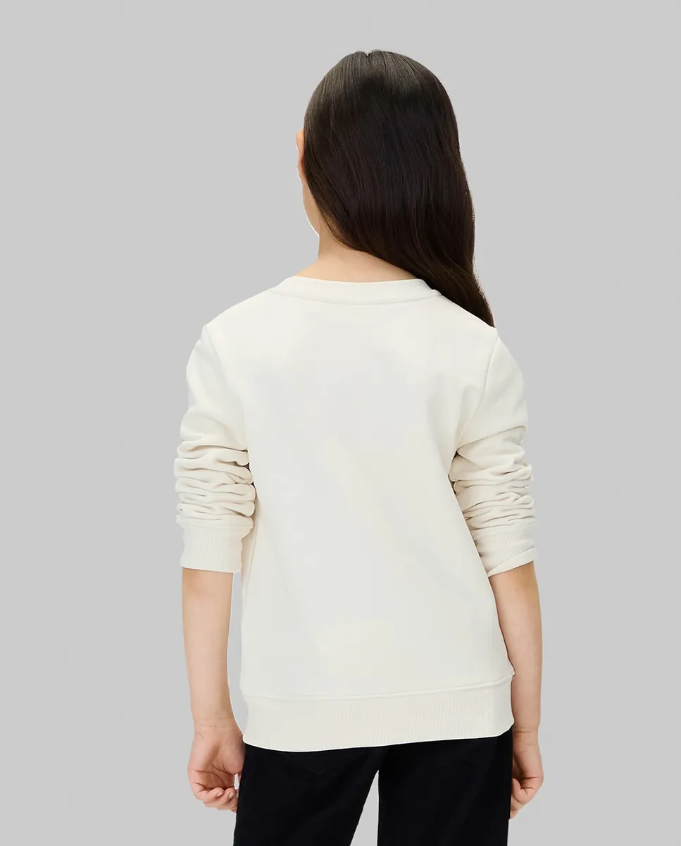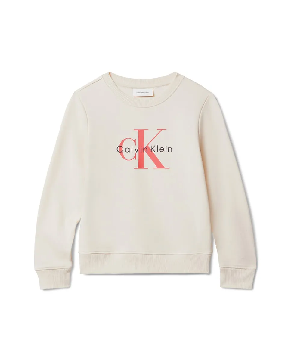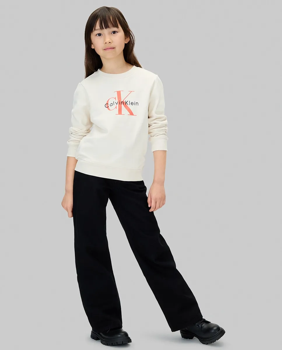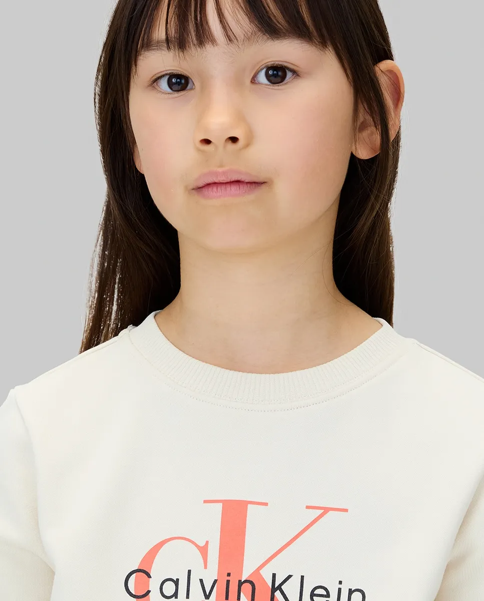 Детский свитшот, изготовленный из 100% экологичного хлопка, с круглым вырезом и логотипом CK-монограмма на груди.
