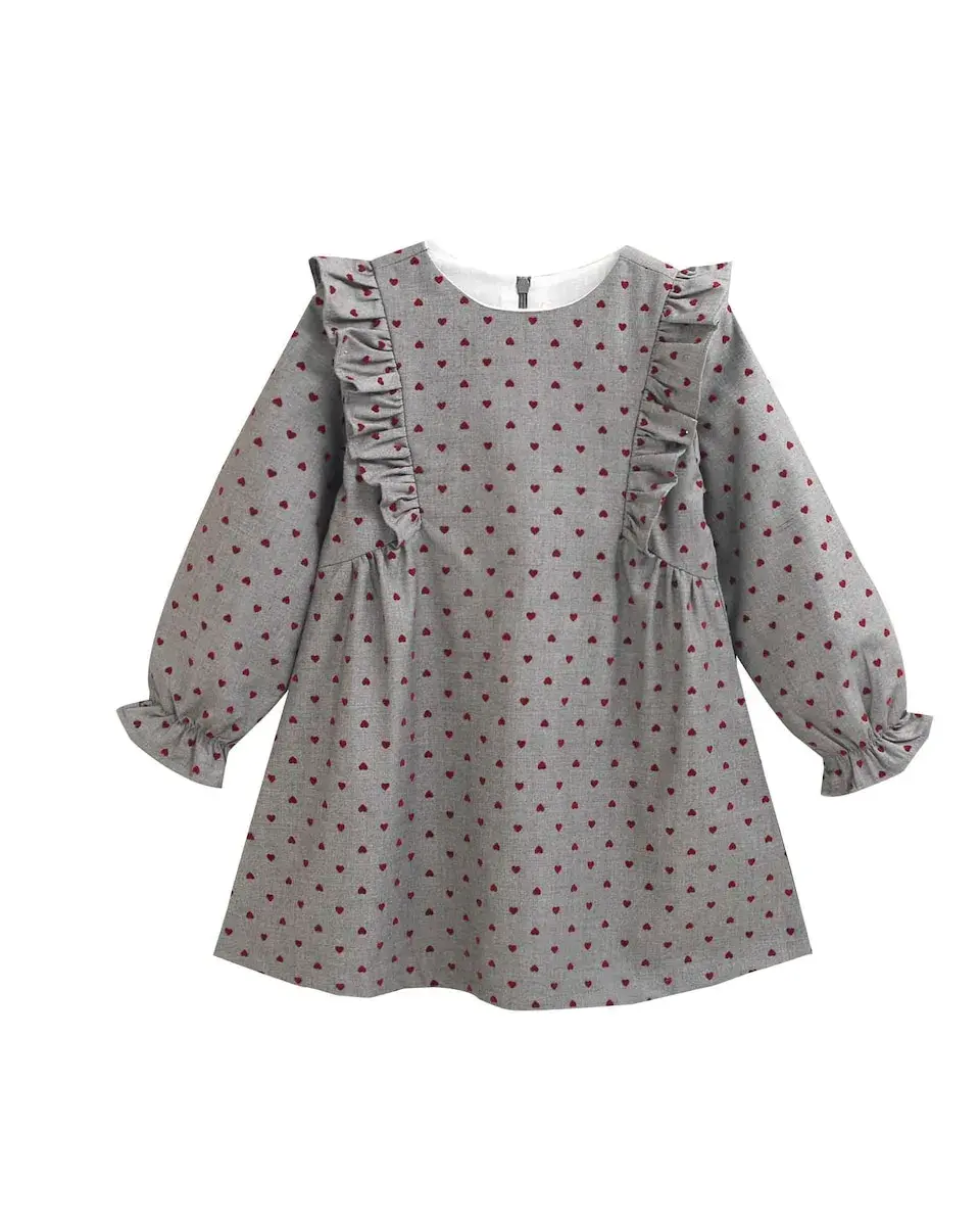Платье для девочки с принтом в виде сердечек Dadati, серый