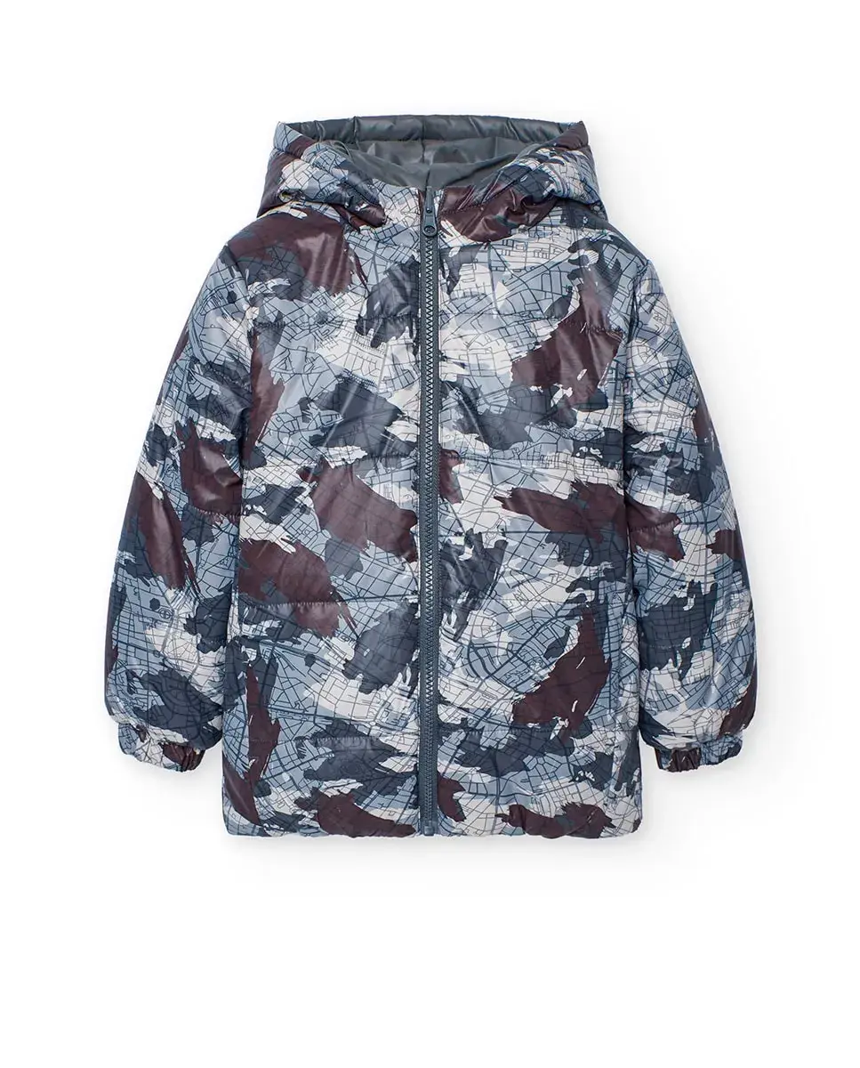 Двухсторонняя техническая парка с элегантным абстрактным принтом в серых тонах, идеально подходящая для зимнего сезона. Изготовленная из прочных и теплых материалов, она обеспечивает отличную защиту от холода, идеально подходит для активного отдыха на улице. Оснащена встроенным капюшоном и застежкой-молнией для большего комфорта и практичности. Доступна в размерах от 2 до 14 лет, легко сочетается со спортивными брюками или джинсами для полного зимнего образа. Ее современный и функциональный дизайн делает ее незаменимым элементом гардероба для самых маленьких.