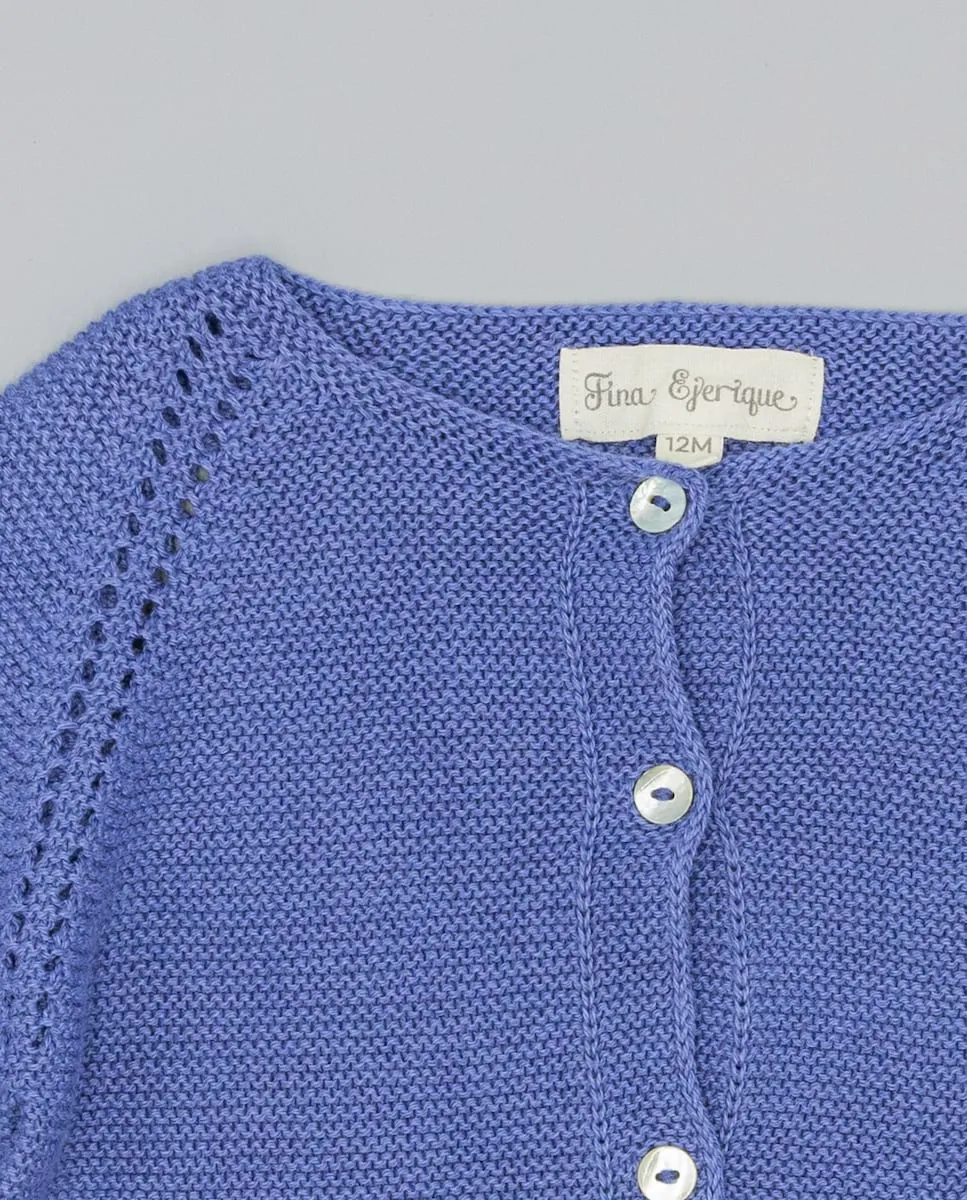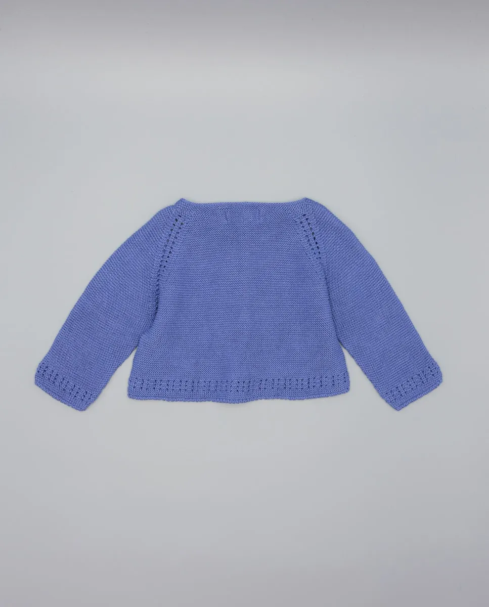 Синяя трикотажная безшовная куртка, созданная для обеспечения максимального комфорта и мягкости. Включает перламутровые пуговицы, которые придают элегантный вид. Доступна в размерах от 3 месяцев до 14 лет. Идеально подходит, чтобы дети оставались в тепле стильно и с комфортом.