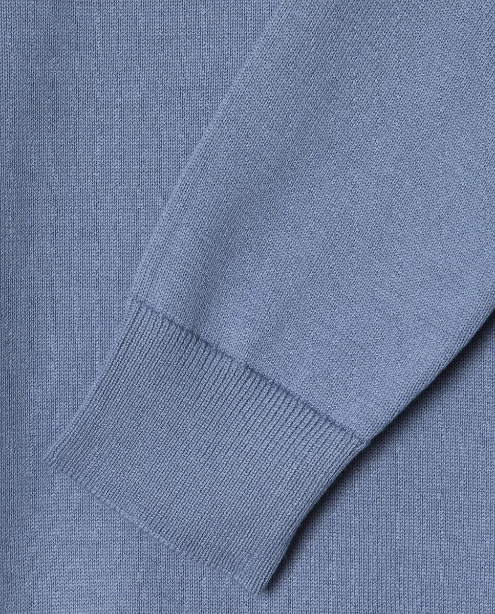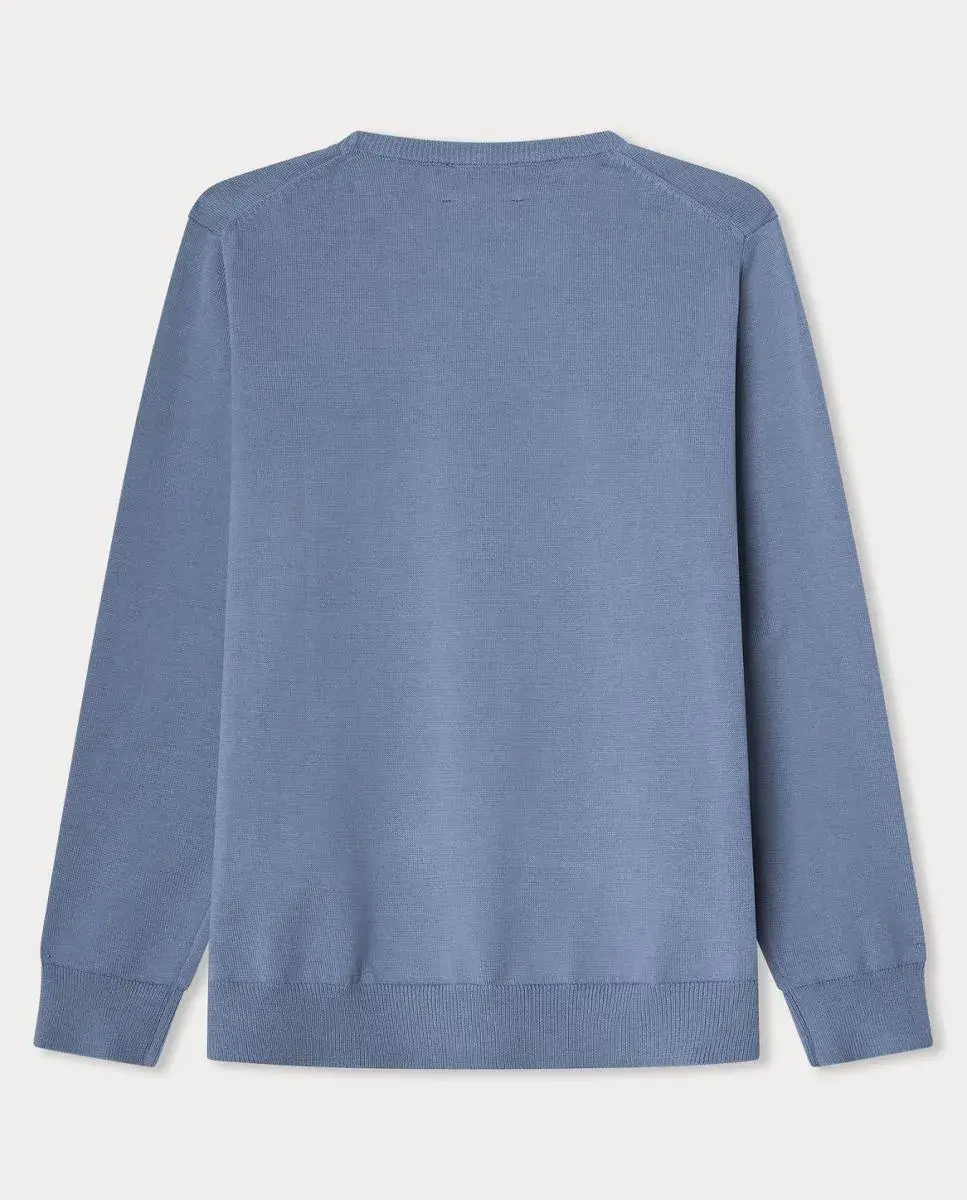 Основной свитер с круглым вырезом, вышитым логотипом контрастного цвета и с подгибом на манжетах и подоле.