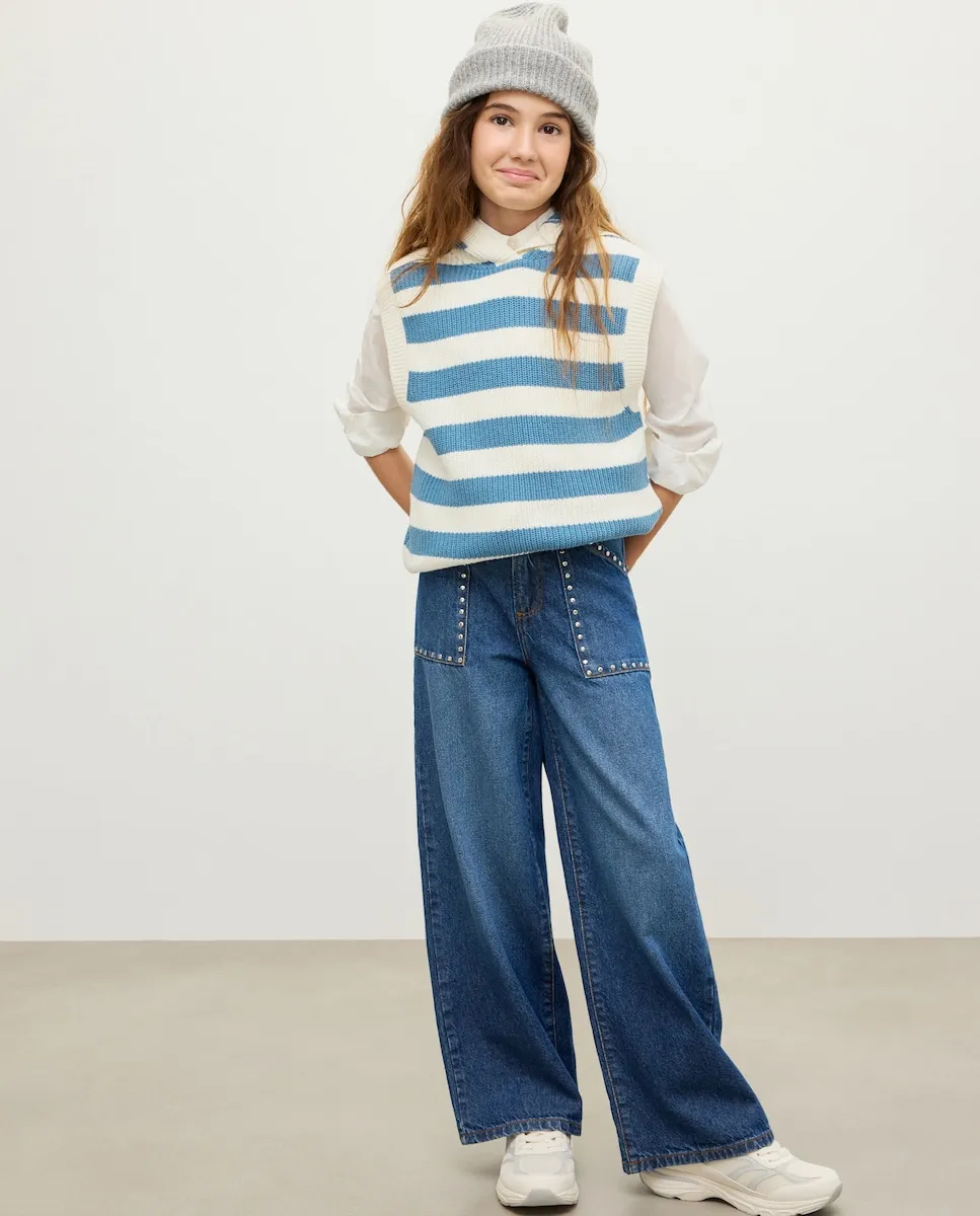 Вязаный жилет для девочки с капюшоном Kids El Corte Inglés, синий