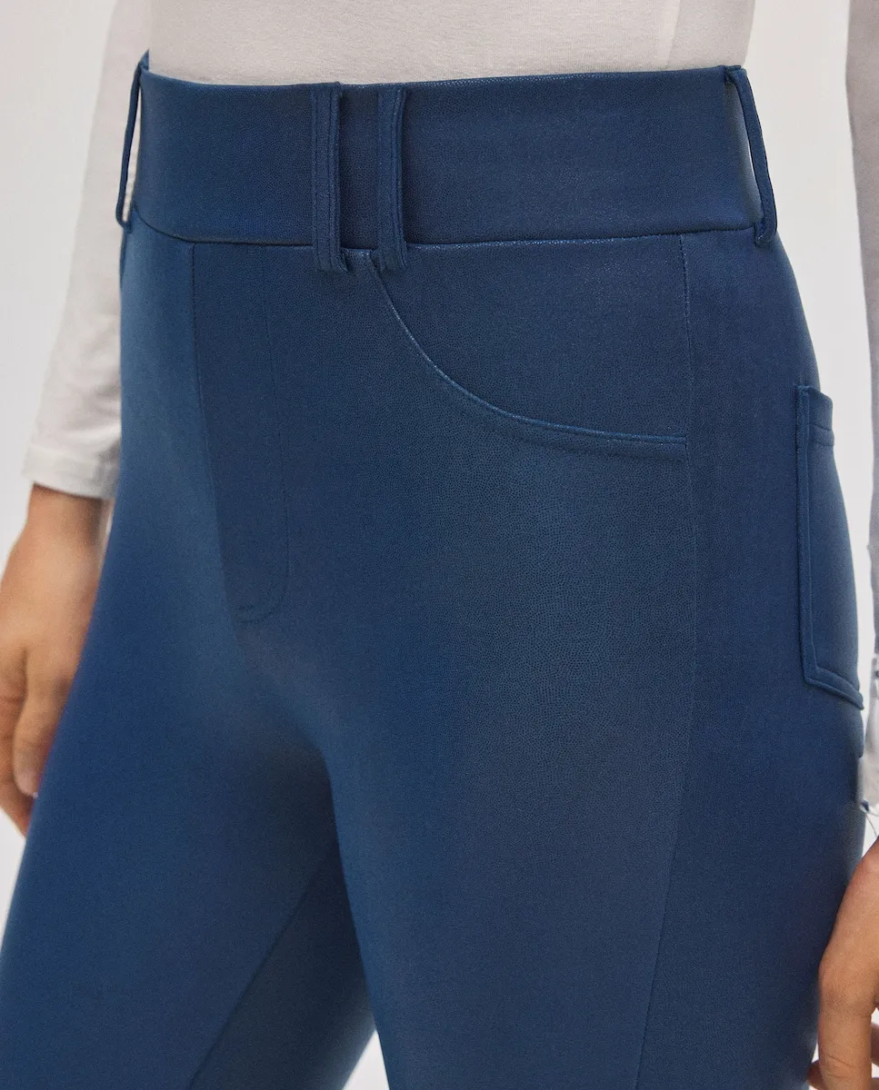 Термоштаны с эффектом кожи, с резинкой и шлевками для пояса, более структурированного стиля с декоративными элементами. Термоштаны с эффектом кожи. Особенности: Уровень термоизоляции: средний - подходит для прохладной погоды, не жертвуя стилем. Эффект кожи: мягкая покрытая поверхность, имитирующая кожу с элегантным акцентом. Высокая посадка: высокая талия с тонкой резинкой и функциональными шлевками для пояса. Стиль скинни: обтягивающий крой, подчеркивающий ноги. Декоративные карманы спереди и функциональные карманы сзади. Универсальная вещь: легко сочетается с джемперами, рубашками или блейзерами для повседневного или более нарядного образа. Цвет черный. 95% полиэстер, 5% эластан.