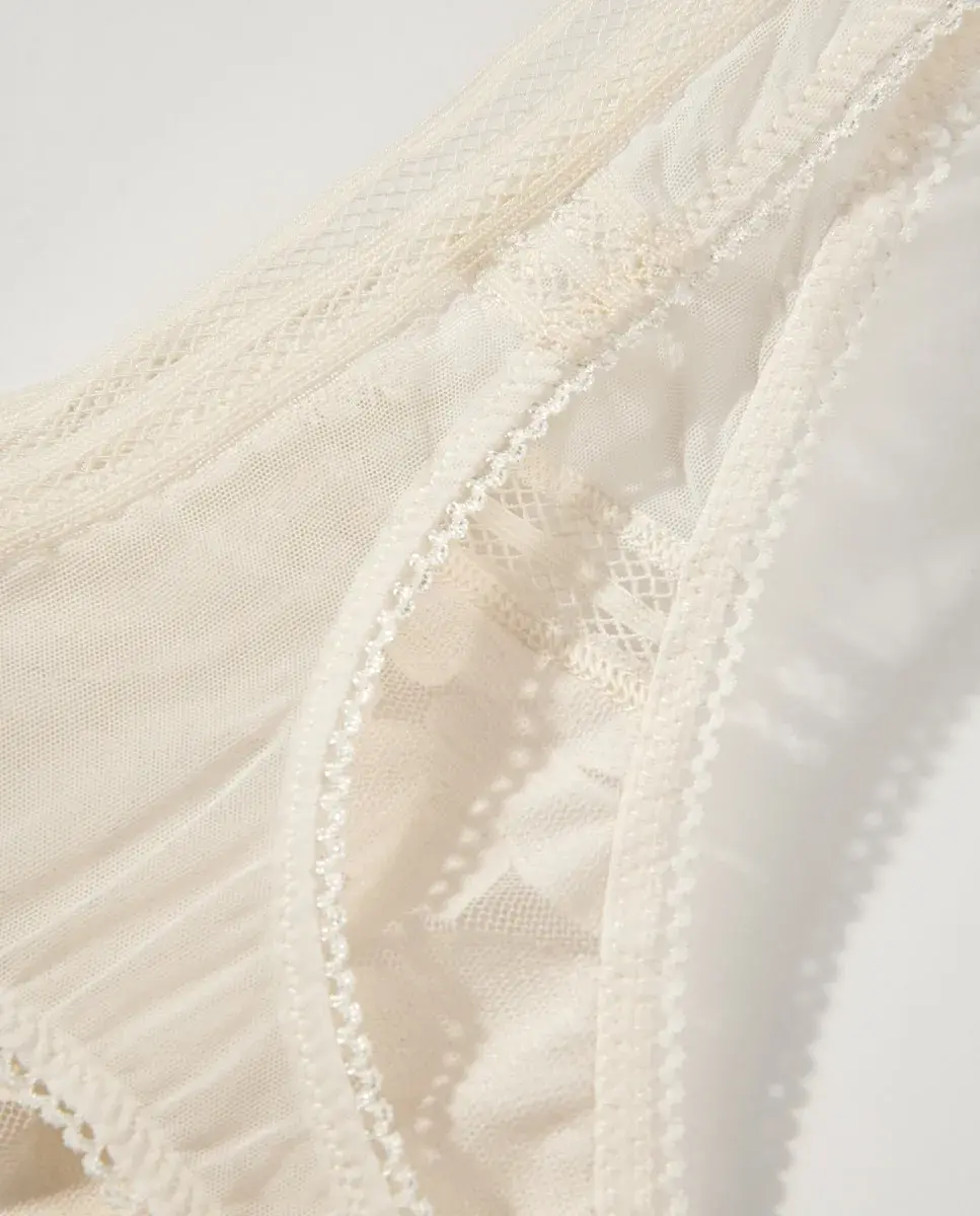 Трусики-танга с цветочным кружевом из экологически чистого материала, мягкие и эластичные в передней части, с эластичным тюлем по бокам и сзади. Талия украшена заметной эластичной лентой. Зона интимной части выполнена из хлопка. Коллекция «Элитное белье». По причинам гигиены возврат и обмен данного изделия невозможны.