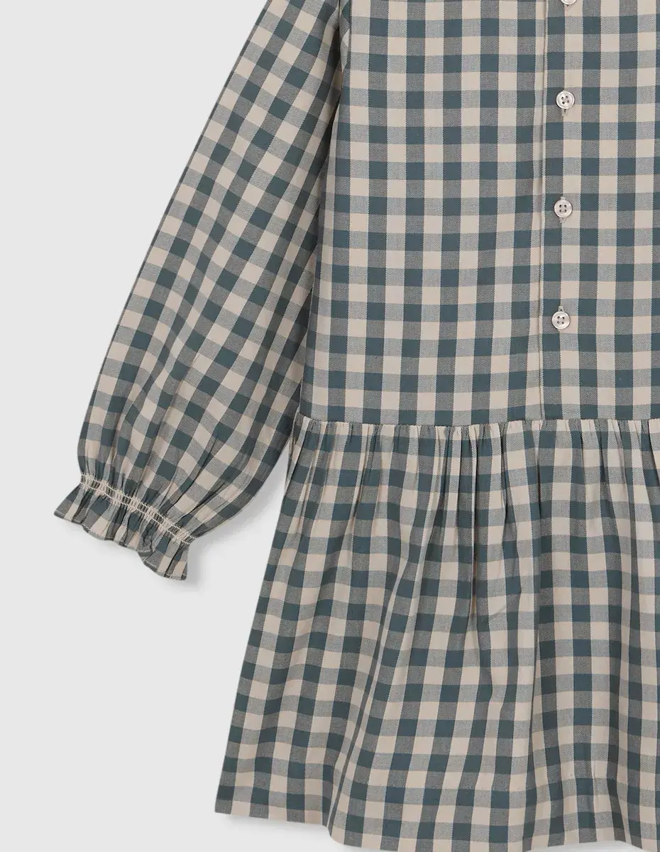 Девичье платье в клетку с вышивкой Gocco, темно-зеленый