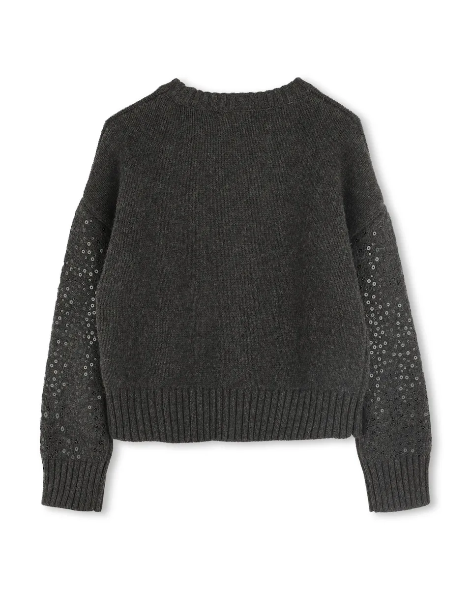 Добавьте немного гламура в образ вашего ребенка с этим джемпером DKNY Mini-me. Изготовленный из смеси хлопка, полиамида и шерсти, он обеспечивает мягкость и тепло. Вышитые на рукавах пайетки создают сияющий эффект, а металлическая пластина DKNY на передней части придает изделию изысканный вид. Современная и элегантная модель, идеально подходящая для повседневного шикарного образа.