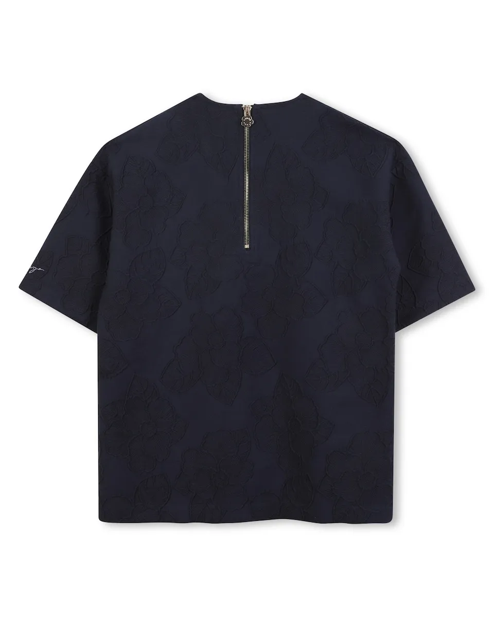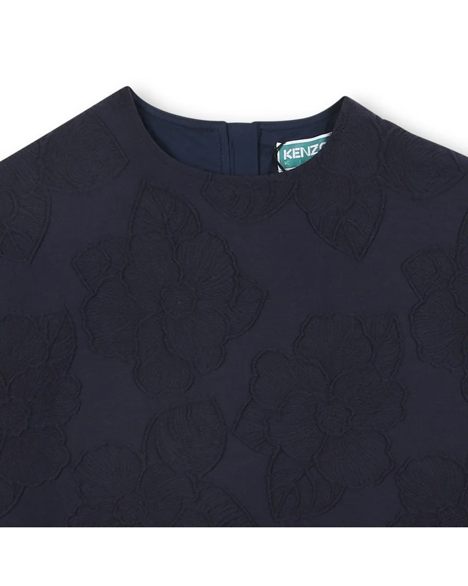 С текстурированным жаккардовым узором и тщательной отделкой это платье от KENZO KIDS является синонимом элегантности. Его рукава три четверти и структурированный крой подчеркиваются элегантной золотой молнией на спине с фирменной маркировкой. Вышивка внизу рукавов завершает этот изысканный предмет гардероба, идеально подходящий для стильного и современного образа.