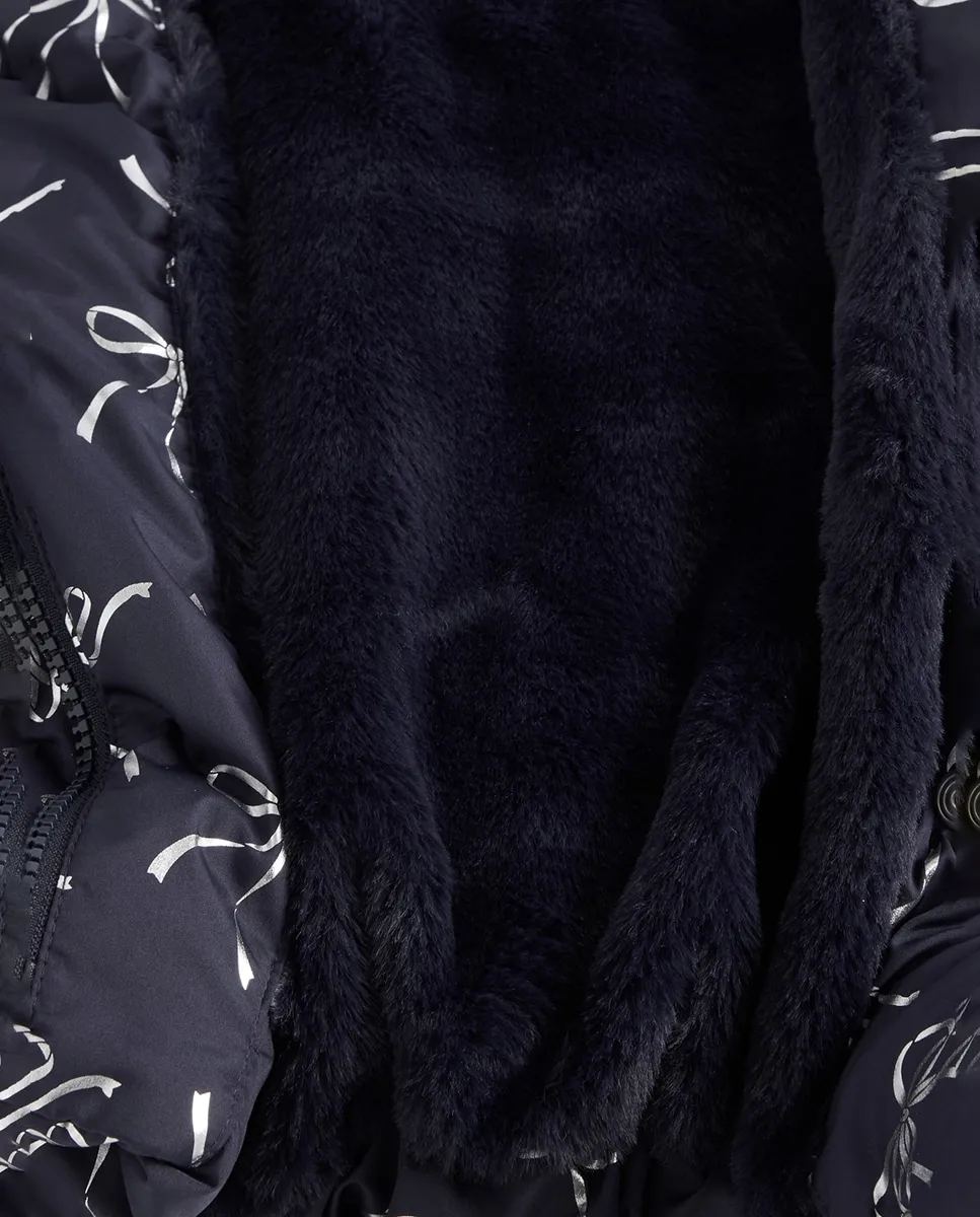 Мягкая стеганая куртка, устойчивая к ветру, с уютной подкладкой из искусственного меха. Воротник с капюшоном. Длинные рукава с плотно прилегающими манжетами. Скрытая застежка-молния спереди под планкой с кнопками. Боковые карманы. Полностью подкладочная. Подкладка из искусственного меха в капюшоне и основной части, подкладка из тафты на рукавах, карманы с флисовой подкладкой и защитные манжеты. Некоторые модели имеют полный принт. Этот продукт изготовлен на фабрике, которая инвестирует в гендерное равенство и расширение прав и возможностей женщин через RISE. Узнайте больше на сайте gapinc.com/equity.