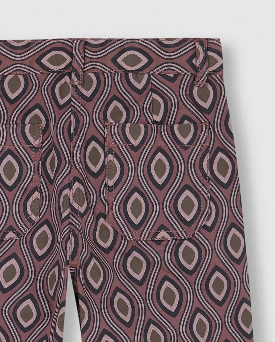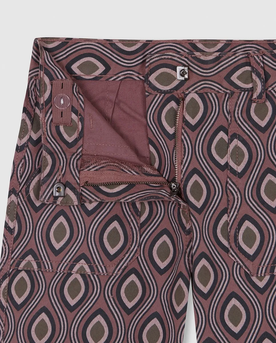 Брюки из саржи с принтом, с карманами спереди и сзади.