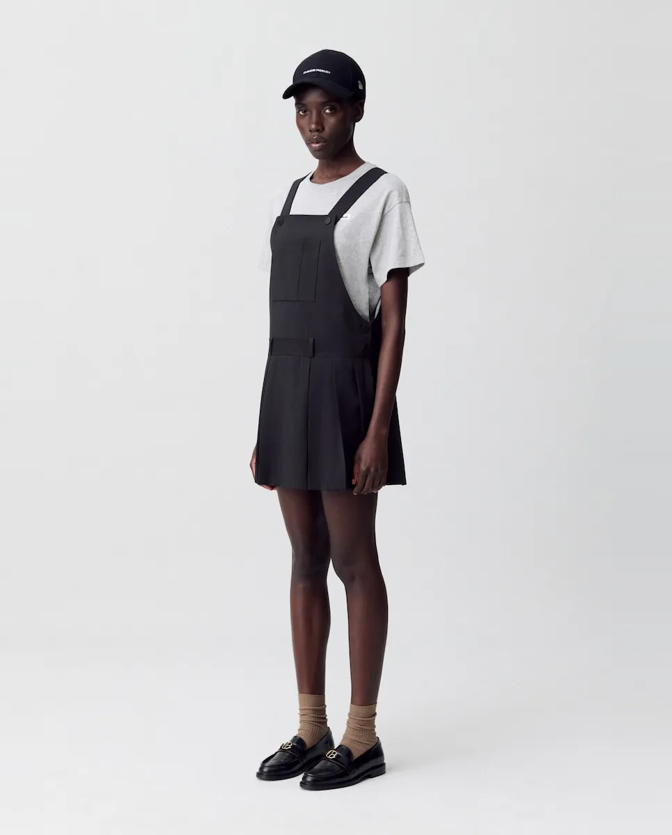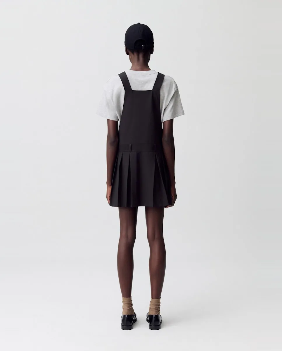Наше исследование отдает дань уважения двум женским фигурам 50-х и 60-х годов - визионерскому архитектору Флоренс Нолл и иконы поп-культуры Рози-Клепальщице, представляя комплекты, которые одновременно функциональны и элегантны. Сочетая преппи и рабочие стили, мы создали гибридные комплекты, такие как поношенный кожаный костюм или джерсиновое платье с узором «гусиная лапка», с чистыми линиями, подчеркивающими детали пуговиц. Короткое сарафанное платье с регулируемыми бретелями и застежками. Бретели с регулируемыми застежками. Два пуговичных крепления в тон с каждой стороны. Большой накладной карман на груди. Четыре шлевки по всей талии. Плоская передняя и задняя части. Плоские вытачки по бокам. Модель полностью на подкладке.