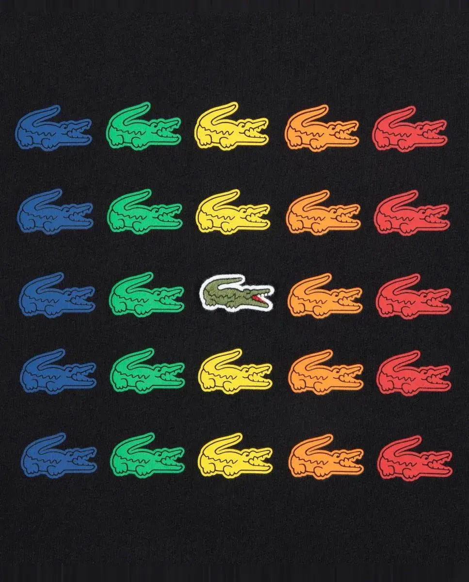 Эта футболка Lacoste, выполненная из мягкого органического хлопкового трикотажа с графическим принтом логотипа крокодила в цветах радуги на передней части, является элегантной версией базового элемента гардероба. Сочетается с любыми брюками Lacoste для создания гармоничного образа.