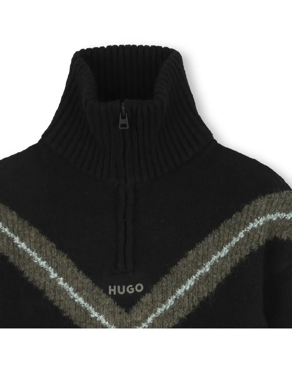 Детский свитер черного цвета с длинными рукавами Hugo