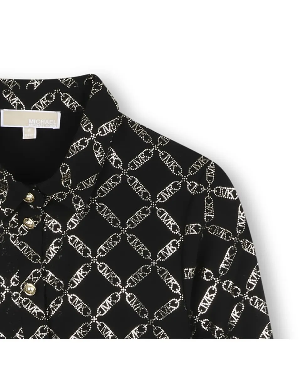Элегантность и современность объединяются в этом платье с длинными рукавами от MICHAEL KORS с золотым логотипом на металлизированном принте 'MK empire'. Стильная планка с пуговицами спереди и подкладка из вискозы добавляют утонченные детали для безупречного образа.