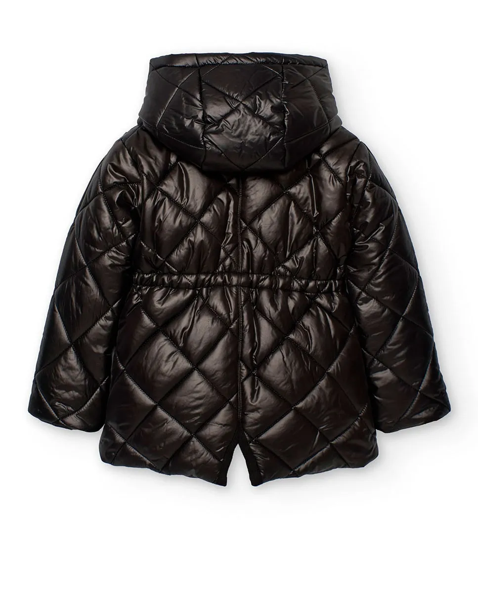 Черная парка из технической ткани, идеально подходящая для того, чтобы ваша маленькая была в тепле в осенне-зимний период. Изготовленная из высококачественного технического материала, она обеспечивает отличную защиту от холода, ветра и дождя. В конструкции предусмотрены капюшон и застежка спереди на молнии, дополненная декоративными пуговицами на карманах для современного акцента. Доступна в размерах от 2 до 14 лет, ее универсальность позволяет сочетать с разными стилями, обеспечивая комфорт и модный вид в любое время.