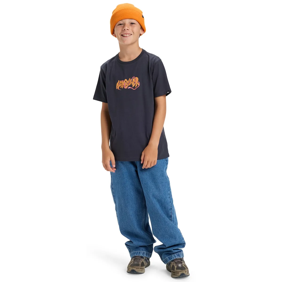 Футболка с короткими рукавами для детей 8-16 лет. Особенности включают: Ткань: органический хлопок, [160 г/м2], Крой: обычный, Воротник: круглый, Сезонные художественные детали спереди, Ребро 1x1 на воротнике и смесь переработанных бирок.