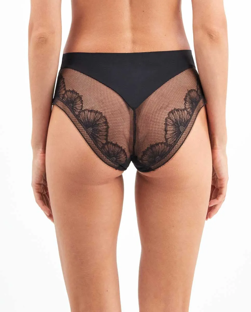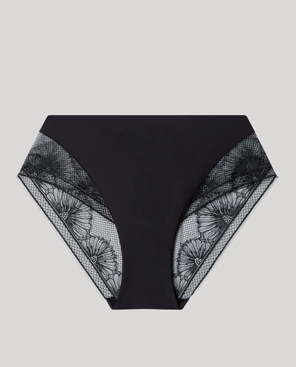 Высокие трусики с эффектом танга, выполненные из кружевного материала с цветочным узором и с декоративной отделкой на линии ног. По причинам гигиены возврат или обмен данного товара невозможен.