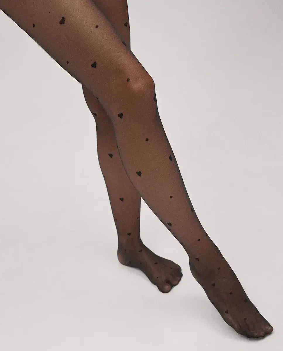 Колготки 20 ден с принтом сердечки и горошек черного цвета. 88% полиамид, 12% эластан