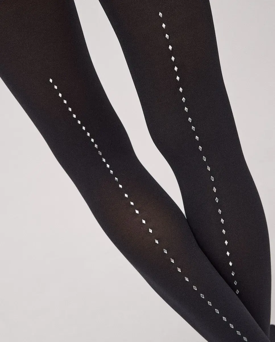 Колготки 20 ден с черной линейной деталью. 85% полиамид, 15% эластан