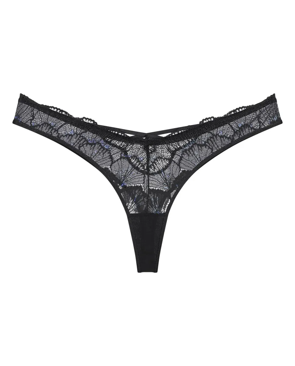 Трусики-танга с низкой посадкой. Аккуратная строчка и мягкие окантовочные ленты для большего комфорта в течение всего дня. Передняя деталь в форме V. Кружева и ткани из переработанных материалов с сертификацией GRS.