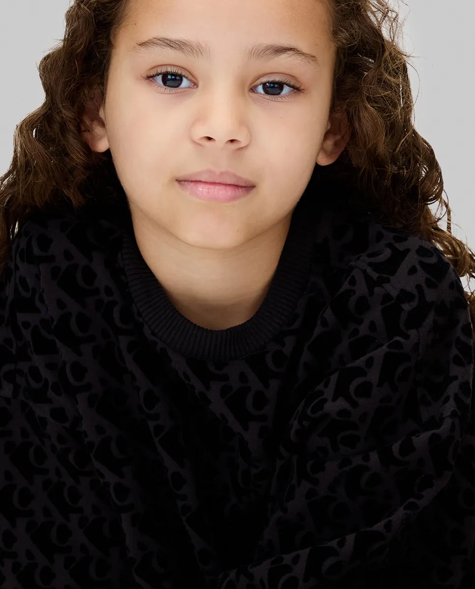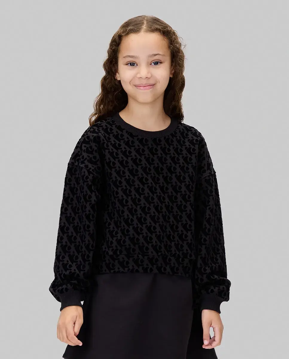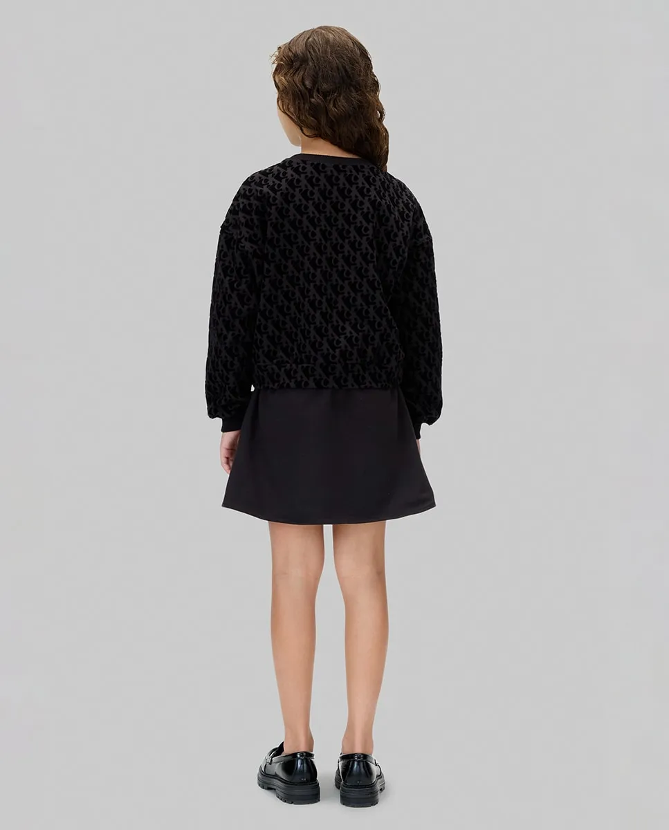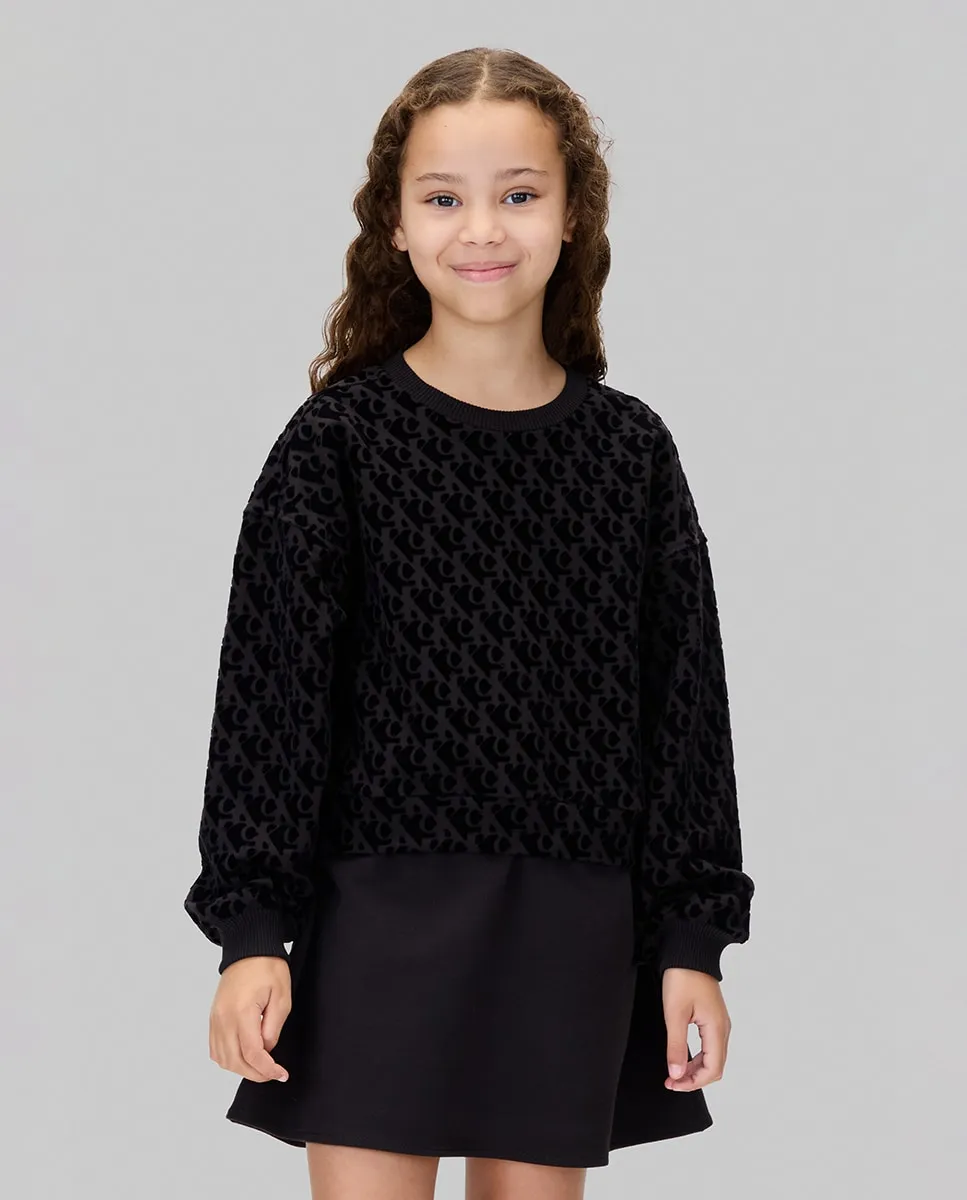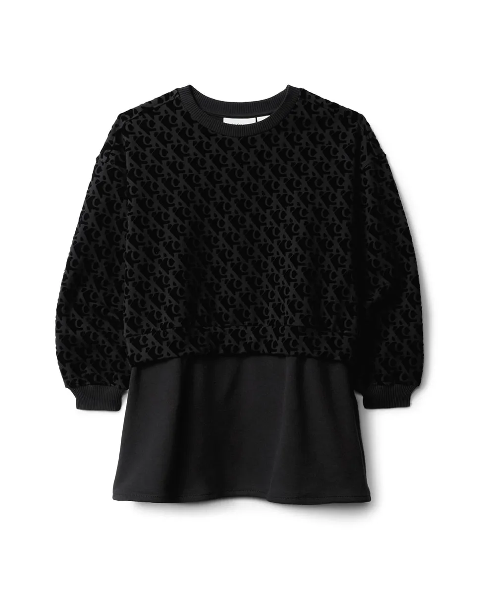 Детское платье, выполненное из смеси хлопка и полиэстера, с эффектом двух частей, длинный рукав и принт CK с бархатной отделкой.