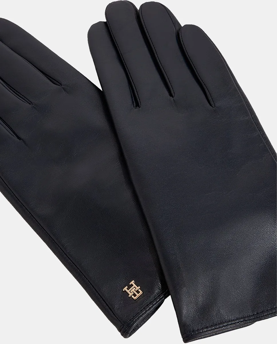 Женские перчатки из кожи темно-синего цвета. Дизайн с металлическим золотым логотипом Tommy Hilfiger.