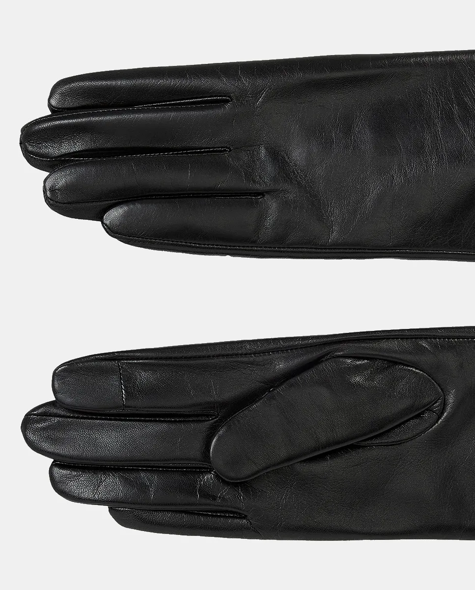 Женские перчатки из кожи черного цвета. Дизайн с металлическим золотым логотипом Tommy Hilfiger.