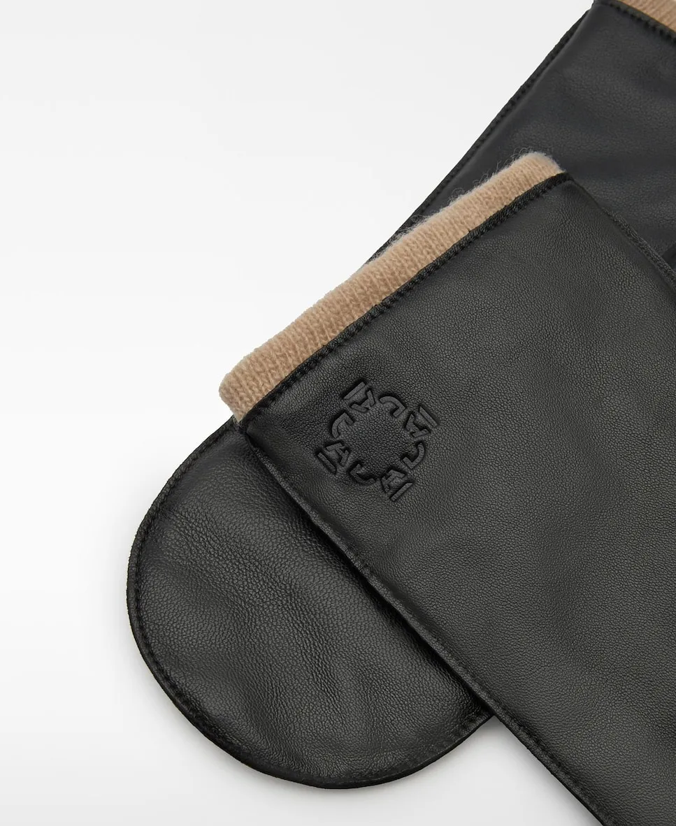 Кожаные варежки с трикотажной подкладкой и тисненым логотипом.