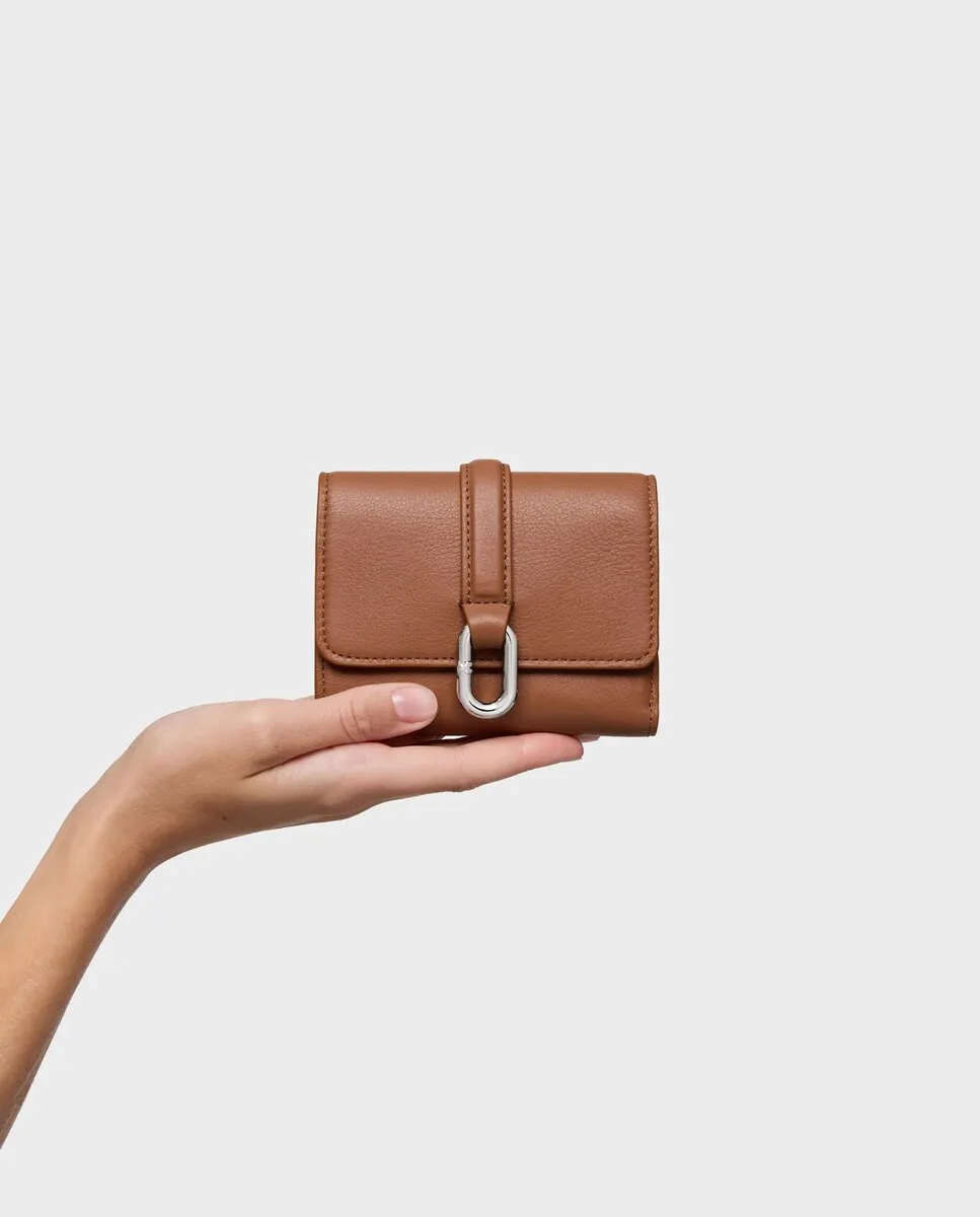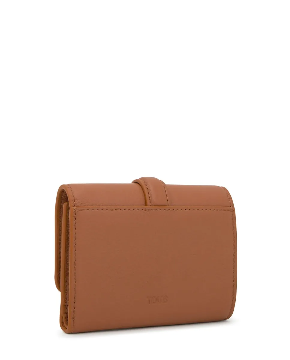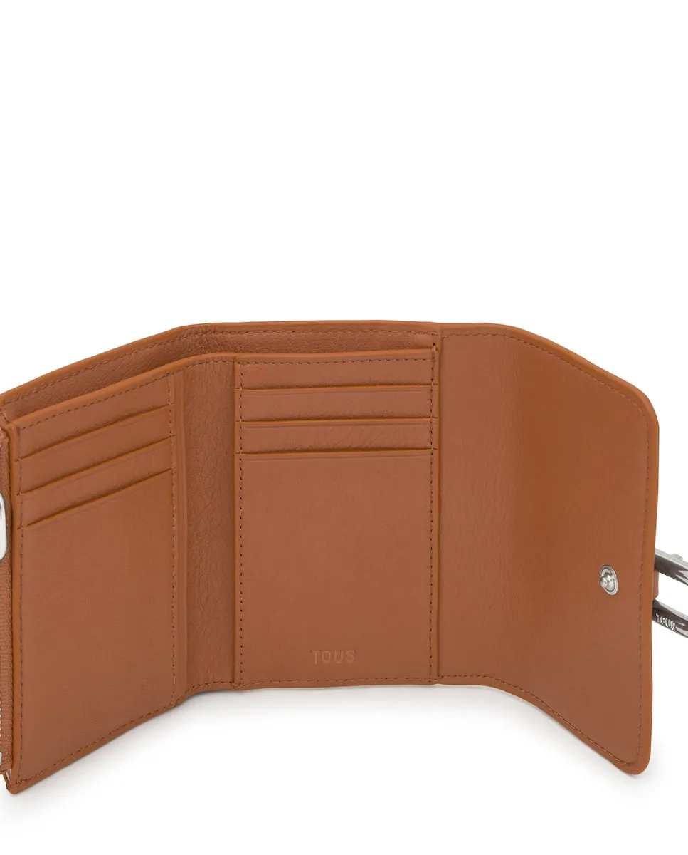 Кошелек TOUS Hold из коровьей кожи с сертификацией LWG, цвет верблюжий. Закрывается на кнопке. Имеет отделение для монет на молнии. Внутри есть восемь слотов для карт и два отделения для банкнот. Размеры (высота x ширина x глубина): 10 x 12 x 2,5 см.