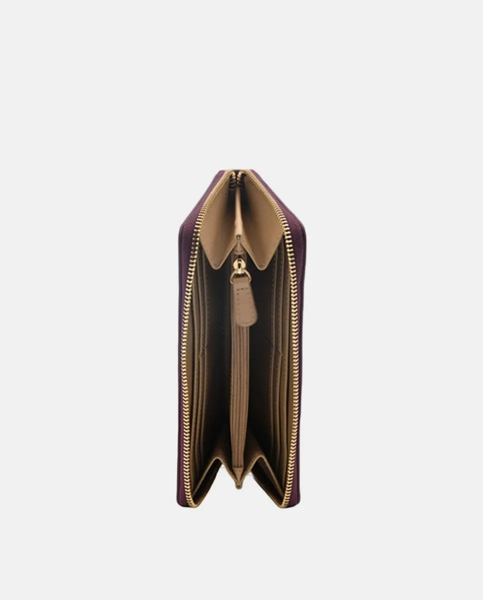 Кошелек на молнии с несколькими отделениями внутри для банкнот и карт, с золотым логотипом снаружи