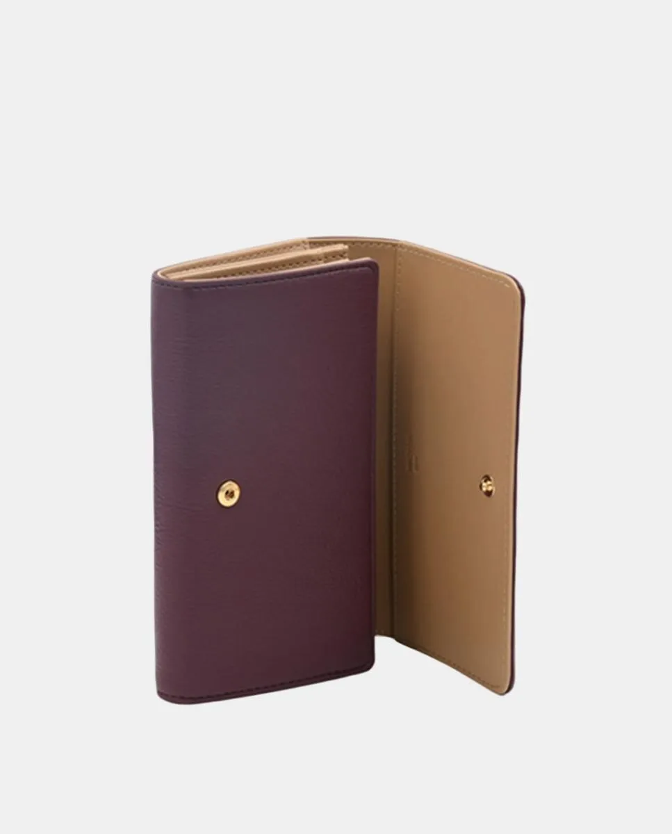 Средний кошелек с автоматическим закрытием, с несколькими отделениями для карт, купюр и монет, с золотым логотипом снаружи