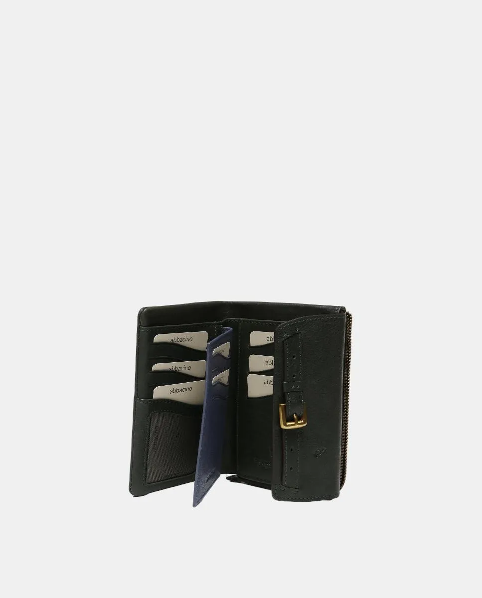 Женский средний кошелек из кожи, с дизайном, который выделяется передней застежкой с клапаном, на котором находится декоративная золотая пряжка. Покрашен в классические оттенки, это идеальный аксессуар, чтобы сочетать со всеми вашими сумками. Основные характеристики включают: изготовление из кожи, внутреннее отделение с различными слотами для карточек (включая специальный для удостоверения личности) и отделением для купюр, съемная карта-книжка и внешний монетник на молнии для большего удобства.