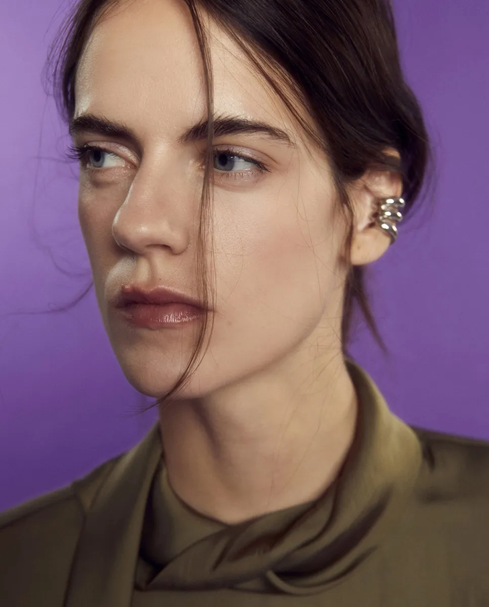 Сатиновый топ с плечевыми накладками Sfera, хаки 4 372₽