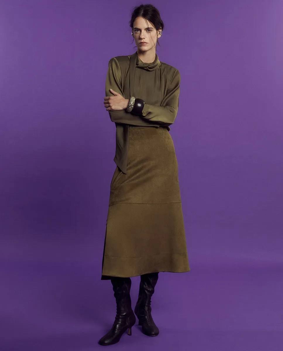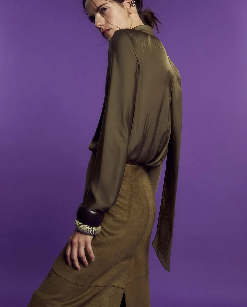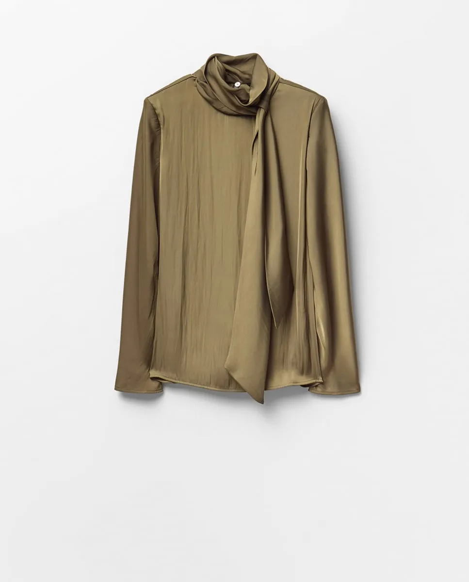 Сатиновый топ с плечевыми накладками Sfera, хаки