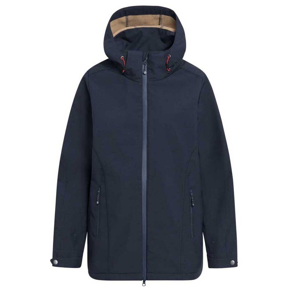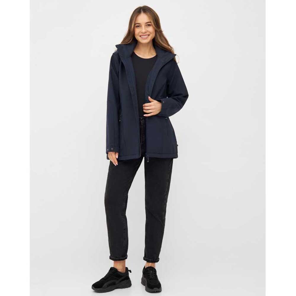 Куртка из софтшелла с регулируемыми ремнями на талии, двусторонней молнией спереди и съемным капюшоном.