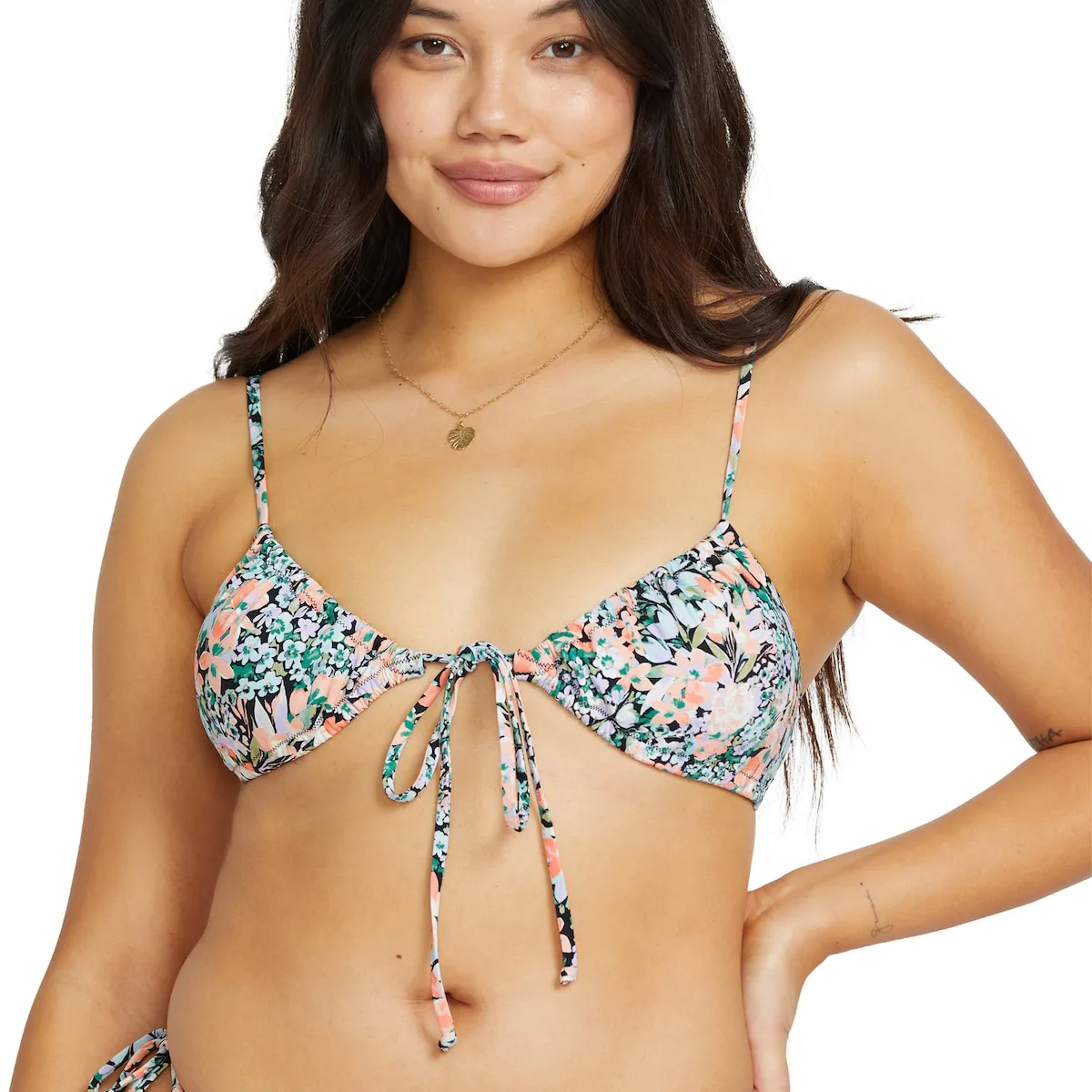 Топ бикини с уменьшенным покрытием для женщин. Характеристики: Коллекция: Коллекция Sweet Fields, Ткань: Мягкая вельветовая смесь нейлона и эластана, Дизайн: Бралет, Вырез: Круглый вырез, Лямки: Регулируемые лямки с кольцами и ползунками, Уплотнение: Съемные чашечки, Застежка: Застежка на крючок с регулировкой в центре спины, Покрытие: Мини-покрытие и Другие детали: Собранный деталь с центральным бантом спереди.