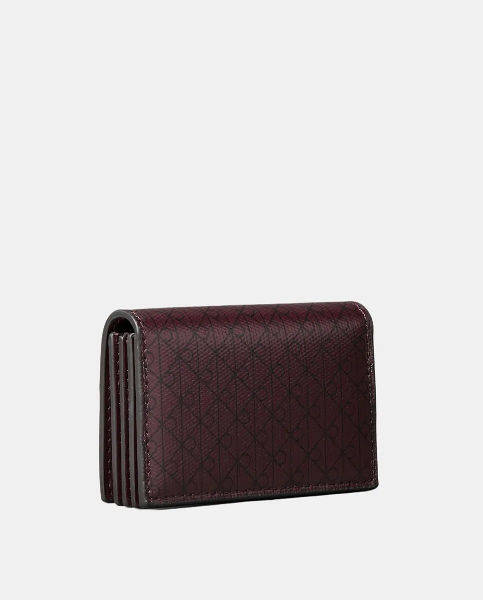 Женский двухскладной кошелек бордового цвета с монохромным принтом. Карман для монет с тремя отделениями.