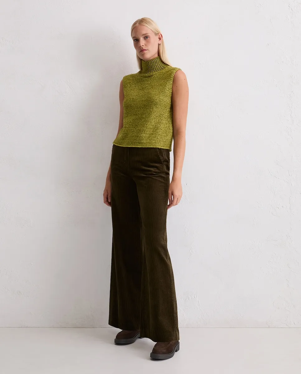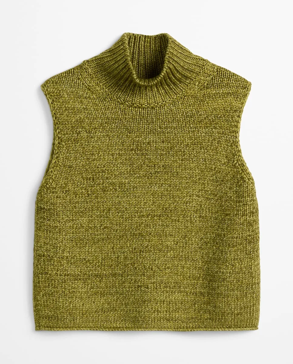 Безрукавный джемпер из чистой сверхмягкой мериносовой шерсти идеально подходит для комбинаций, является настоящим трендом в вязании и прекрасно гармонирует с элегантным преппи-стилем. Эта непринужденная вещь имеет высокий ребристый воротник, который идеально облегает шею, французскую отделку на плечах и закрученный низ. Стиль: носить только на коже или с белой блузкой либо тонкой водолазкой.