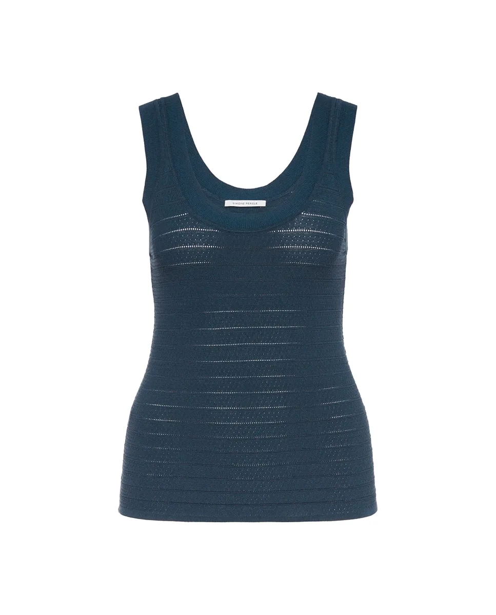 Топ из вискозного трикотажа LENZING ECOVERO. Красивые трикотажные узоры. Форма майки без рукавов, облегающая. Наш выбор: эта модель является частью нашей программы SIMONE CARES, с основной тканью из трикотажа вискозы LENZING ECOVERO. Волокна LENZING ECOVERO получены из устойчивых древесных источников, сертифицированных европейским экологическим знаком, из производственного процесса, который ограничивает выбросы CO2 и потребление воды.