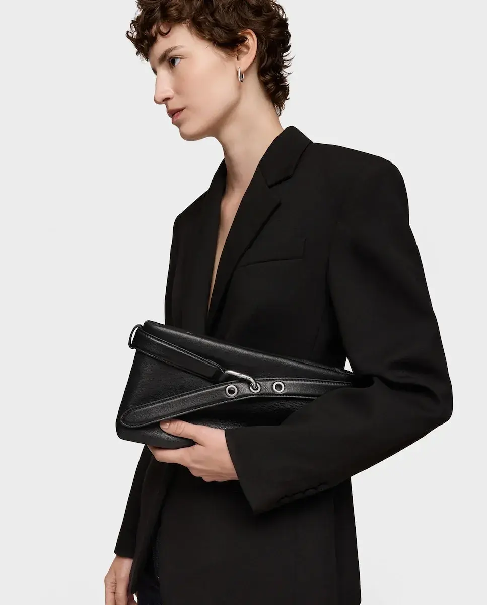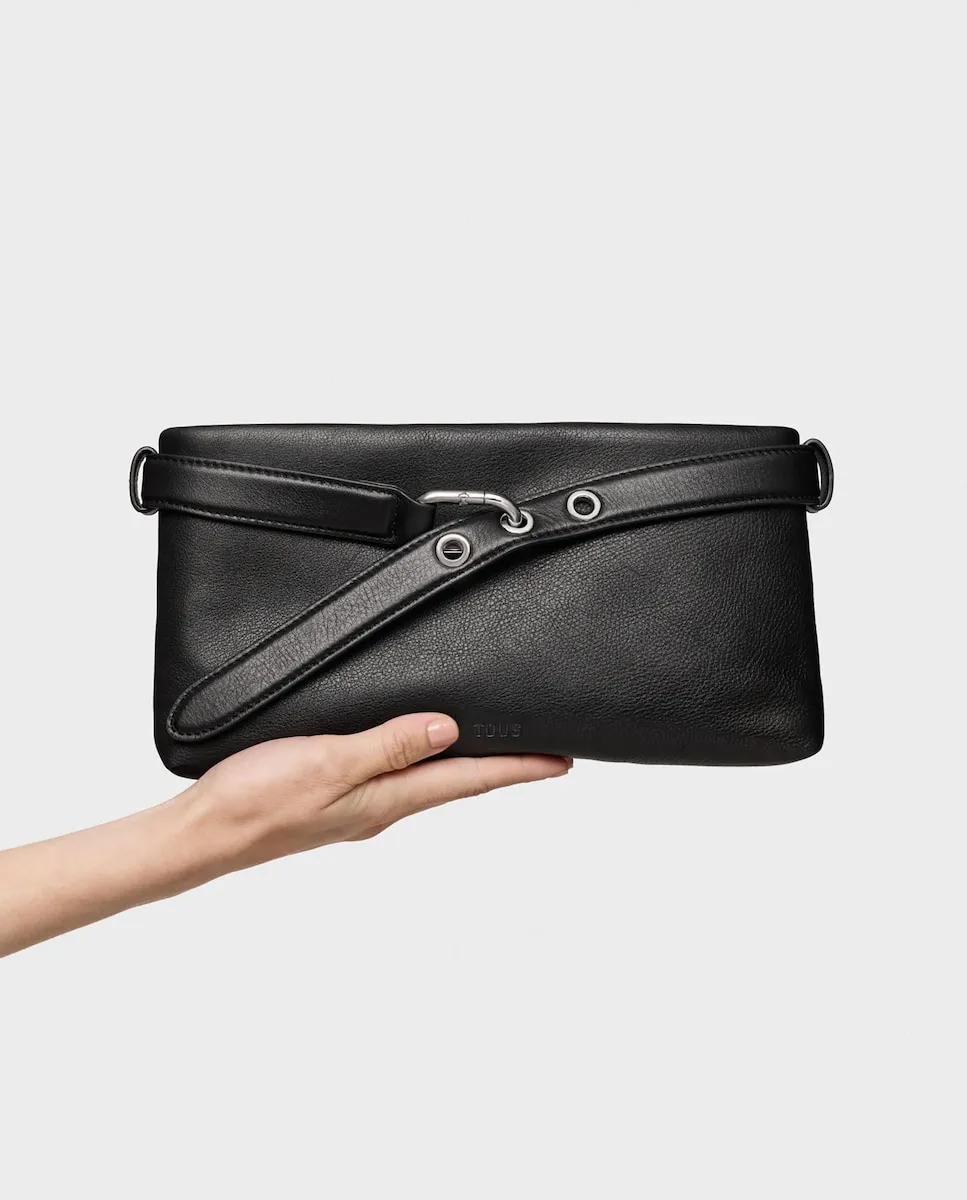 Клатч TOUS Hold из коровьей кожи с сертификацией LWG, черного цвета. Застежка-молния. Внутренний карман на молнии. Регулируемый и съемный плечевой ремень. Размеры (высота x ширина x глубина): 16 x 32 x 4 см.