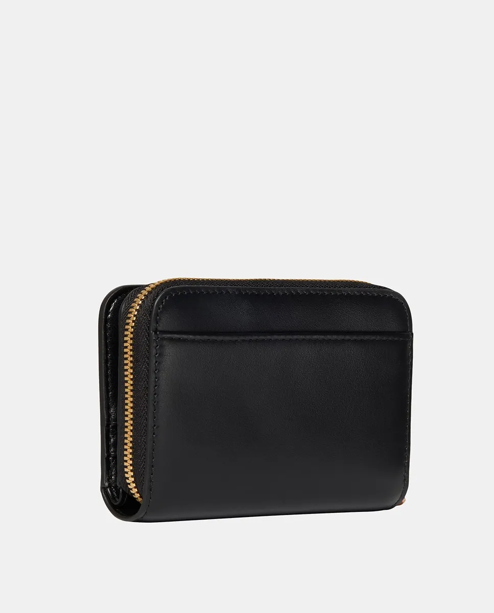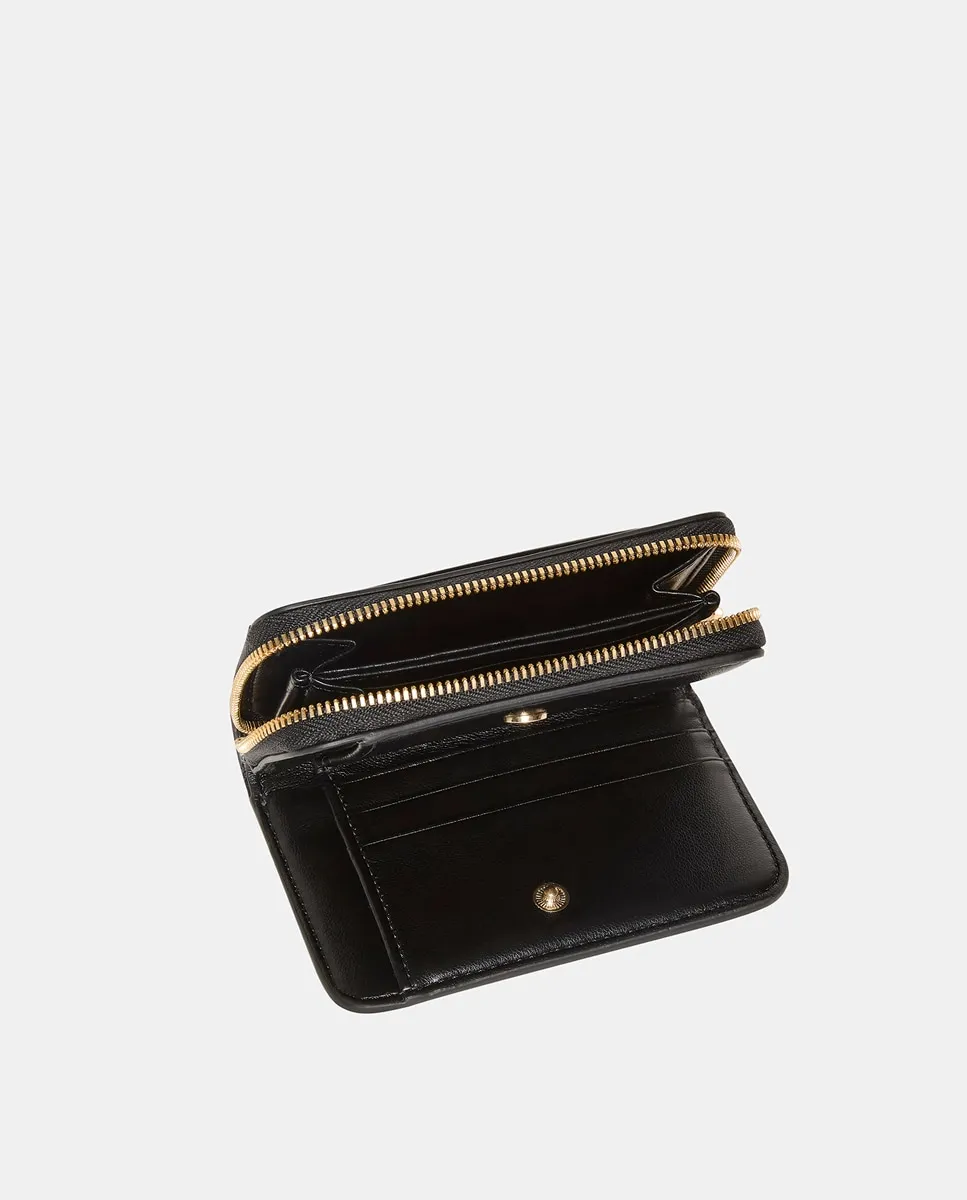 Небольшая женская сумочка черного цвета с логотипом Calvin Klein, напечатанным золотом. Карман для монет на молнии. Внутренний держатель для карточек с застежкой на кнопку.