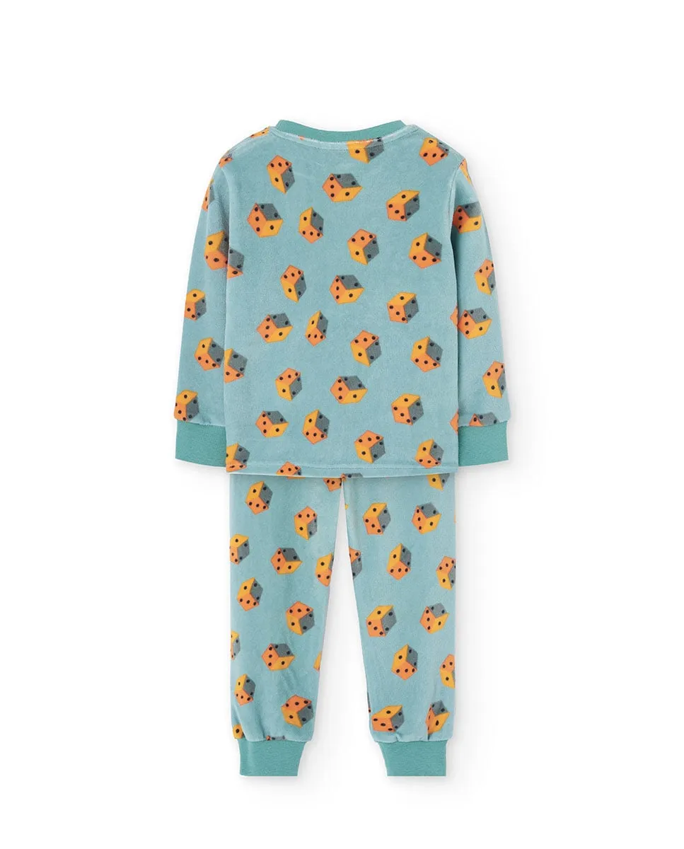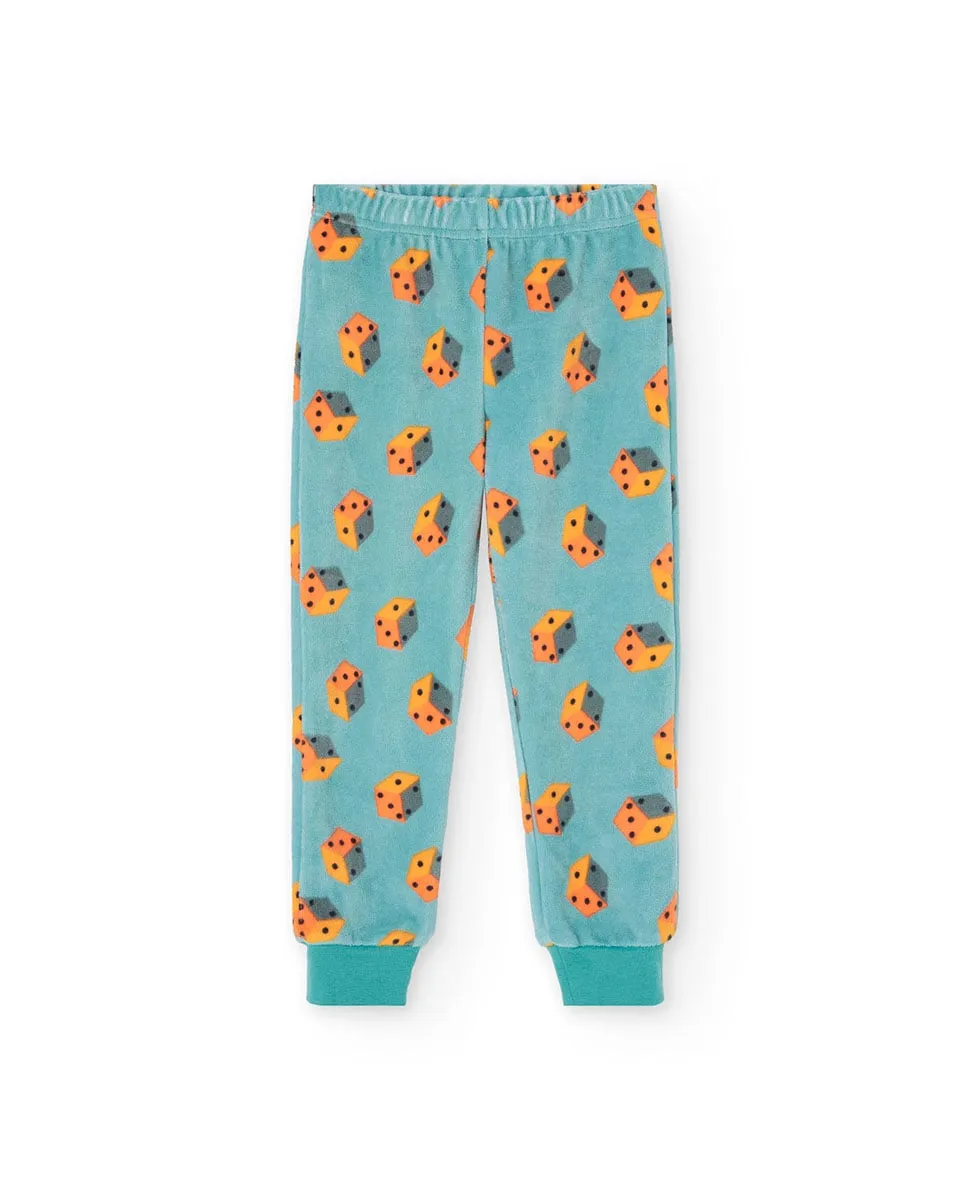 Детская пижама из трикотажа зеленого цвета с рисунком кубиков, идеально подходит для осенних и зимних ночей. Изготовлена из мягкого трикотажного материала, который обеспечивает комфорт и свободу движений, с длинными рукавами и штанинами для тепла во время отдыха. Доступна в размерах от 2 до 14 лет, предлагает веселый и уютный вариант, чтобы дети спали спокойно и стильно.